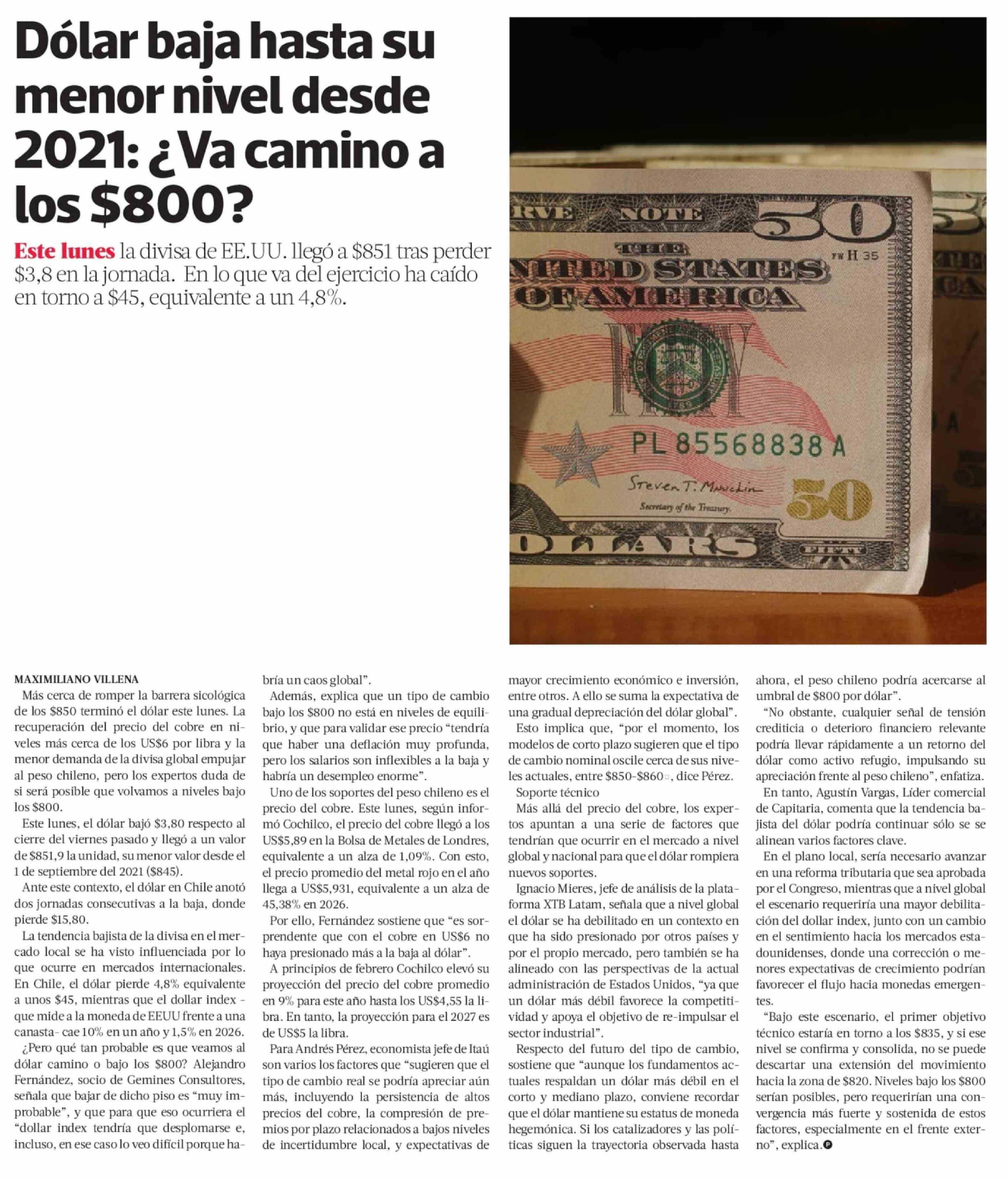 Dólar baja hasta su menor nivel desde 2021: ¿ Va camino a los $800?