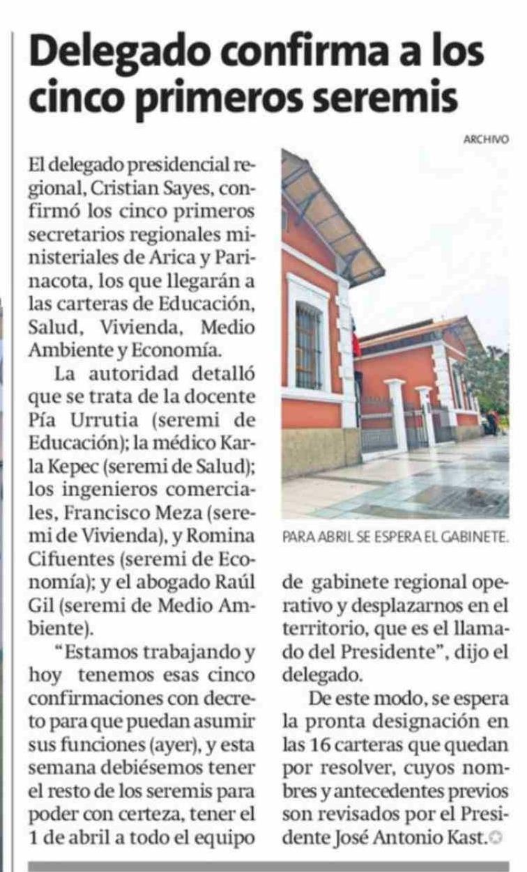 Delegado confirma a los cinco primeros seremis