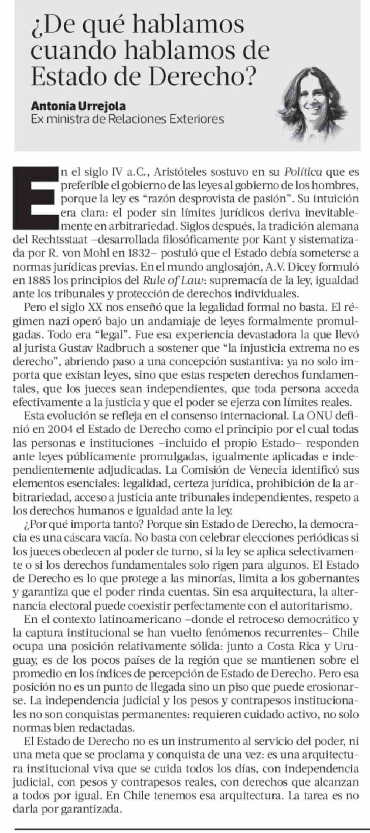 Columnas de Opinión: ¿De qué hablamos cuando hablamos de Estado de Derecho?