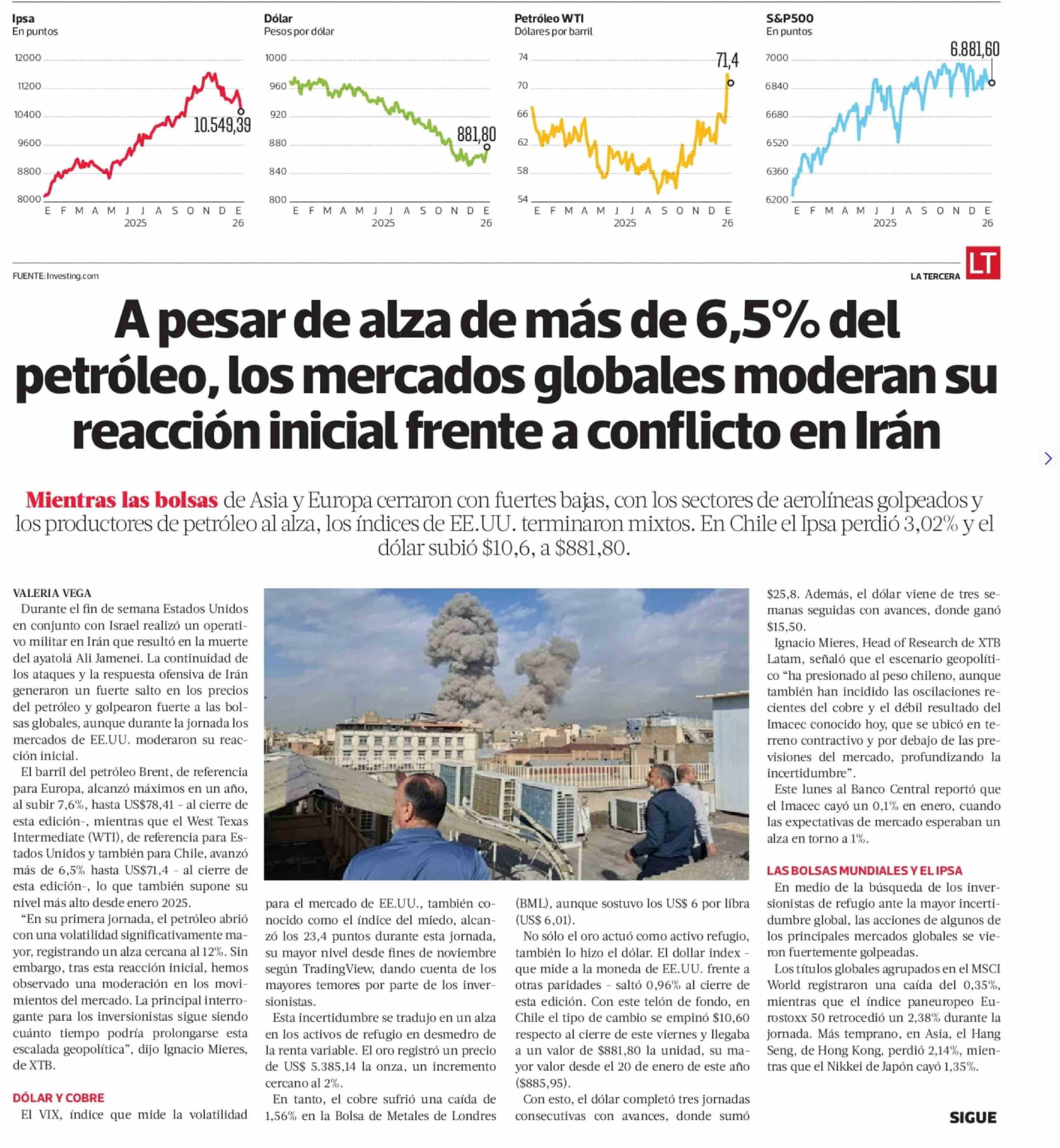 Título: A pesar de alza de más de 6,5% del petróleo, los mercados globales moderan su reacción inicial frente a conflicto en Irán
