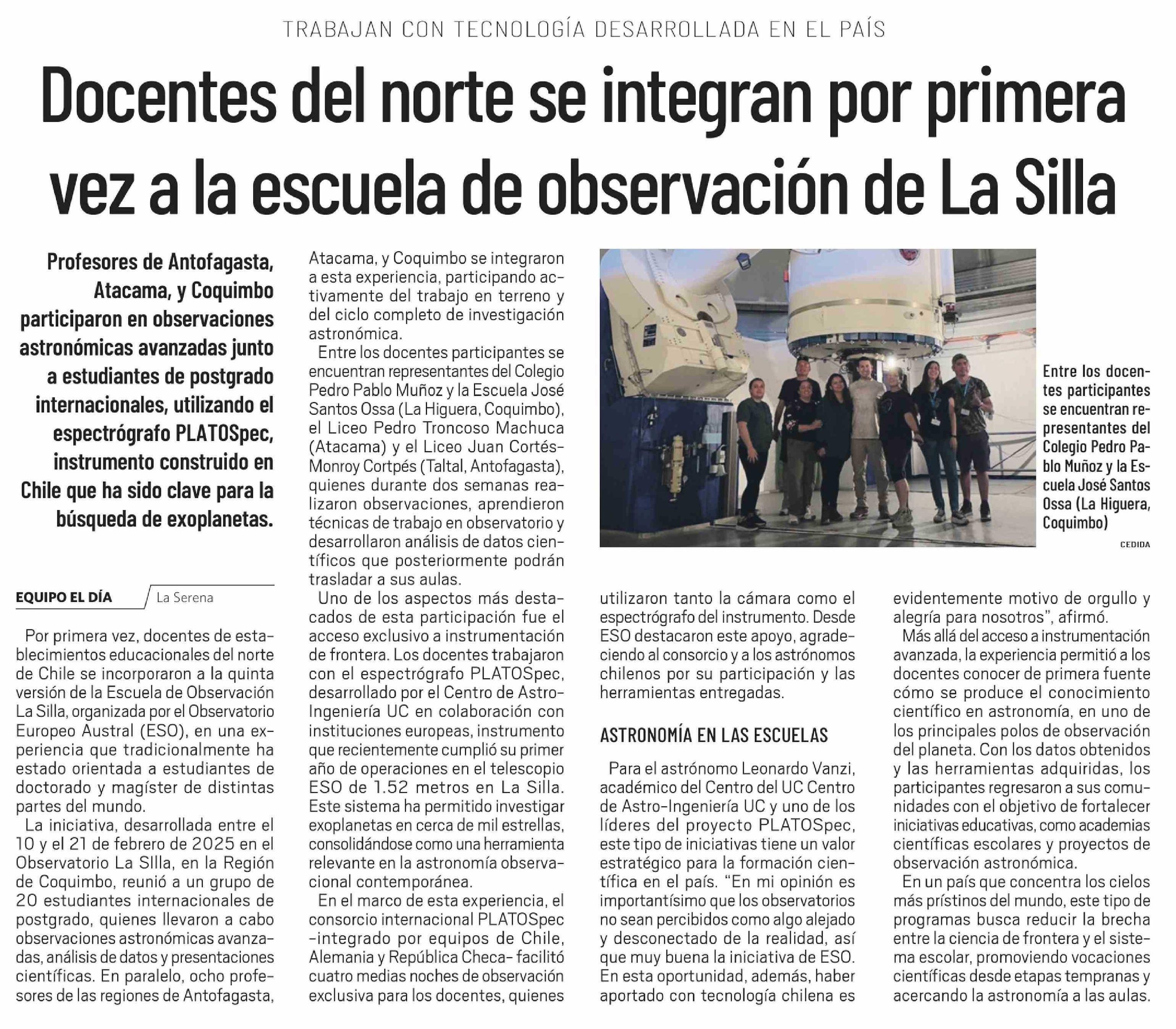Título: Docentes del norte se integran por primera vez a la escuela de observación de La Silla