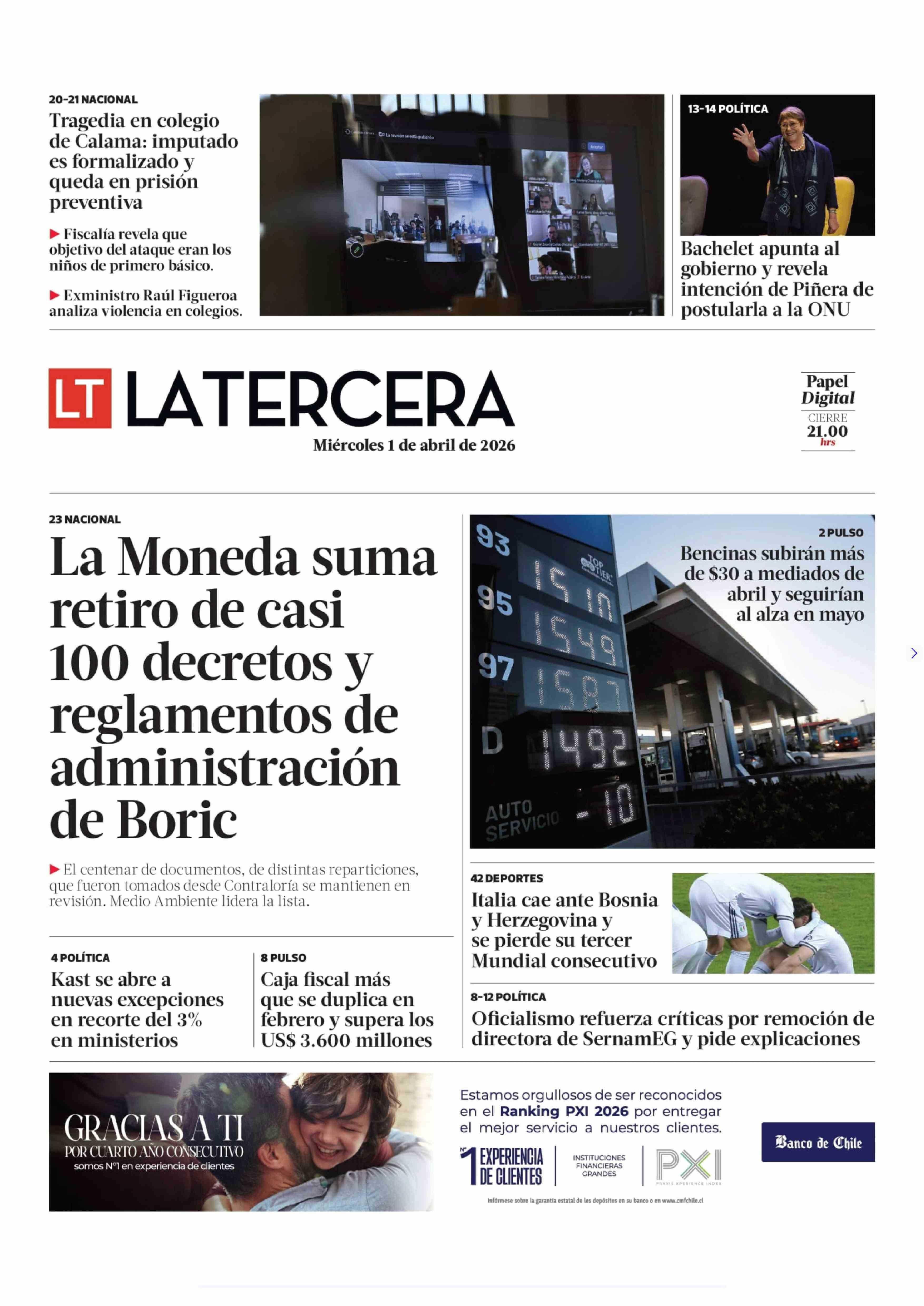 PORTADA LA TERCERA CHILE
