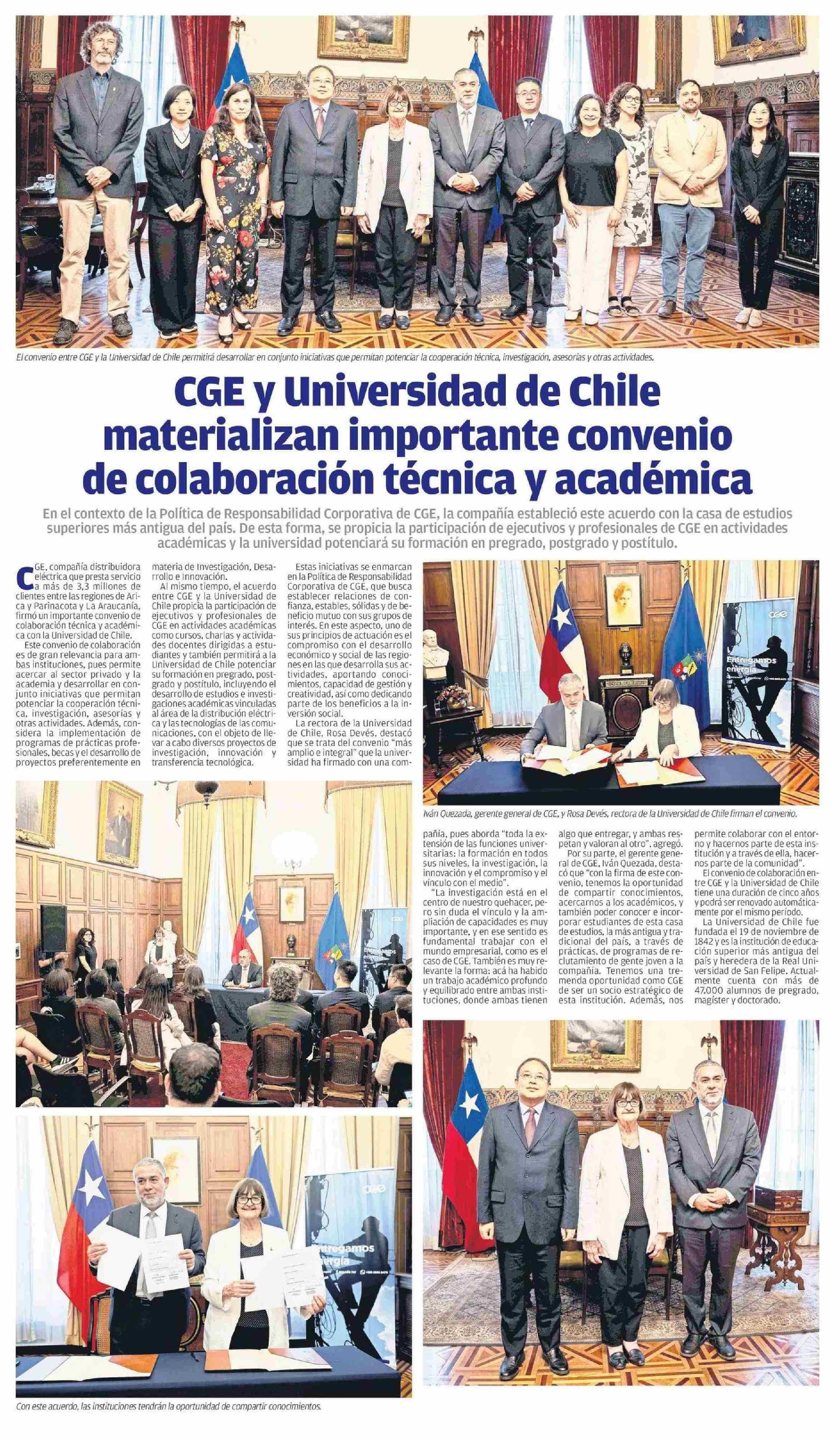 CGE y Universidad de Chile materializan importante convenio de colaboración técnica y académica