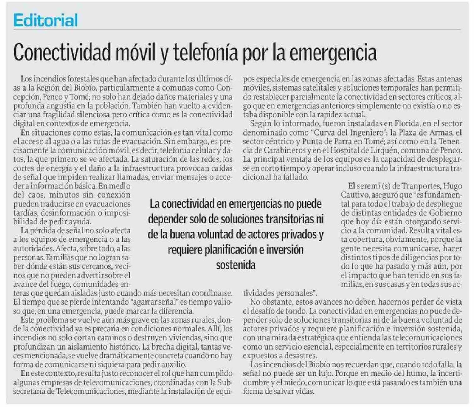 Columnas de Opinión: Conectividad móvil y telefonía por la emergencia