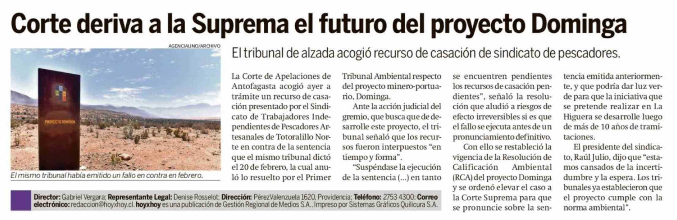 Corte deriva a la Suprema el futuro del proyecto Dominga