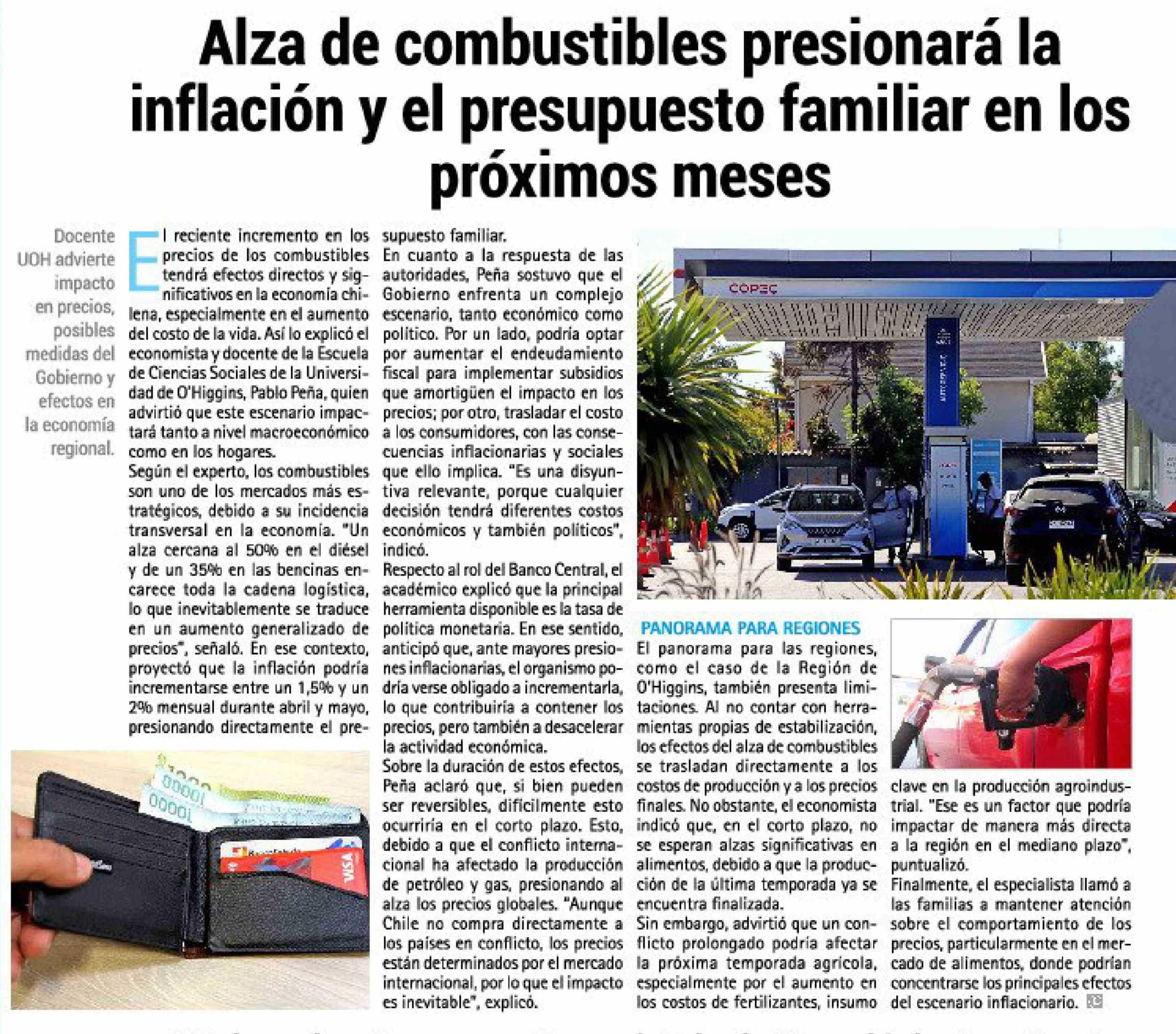 Alza de combustibles presionará la inflación y el presupuesto familiar en los próximos meses