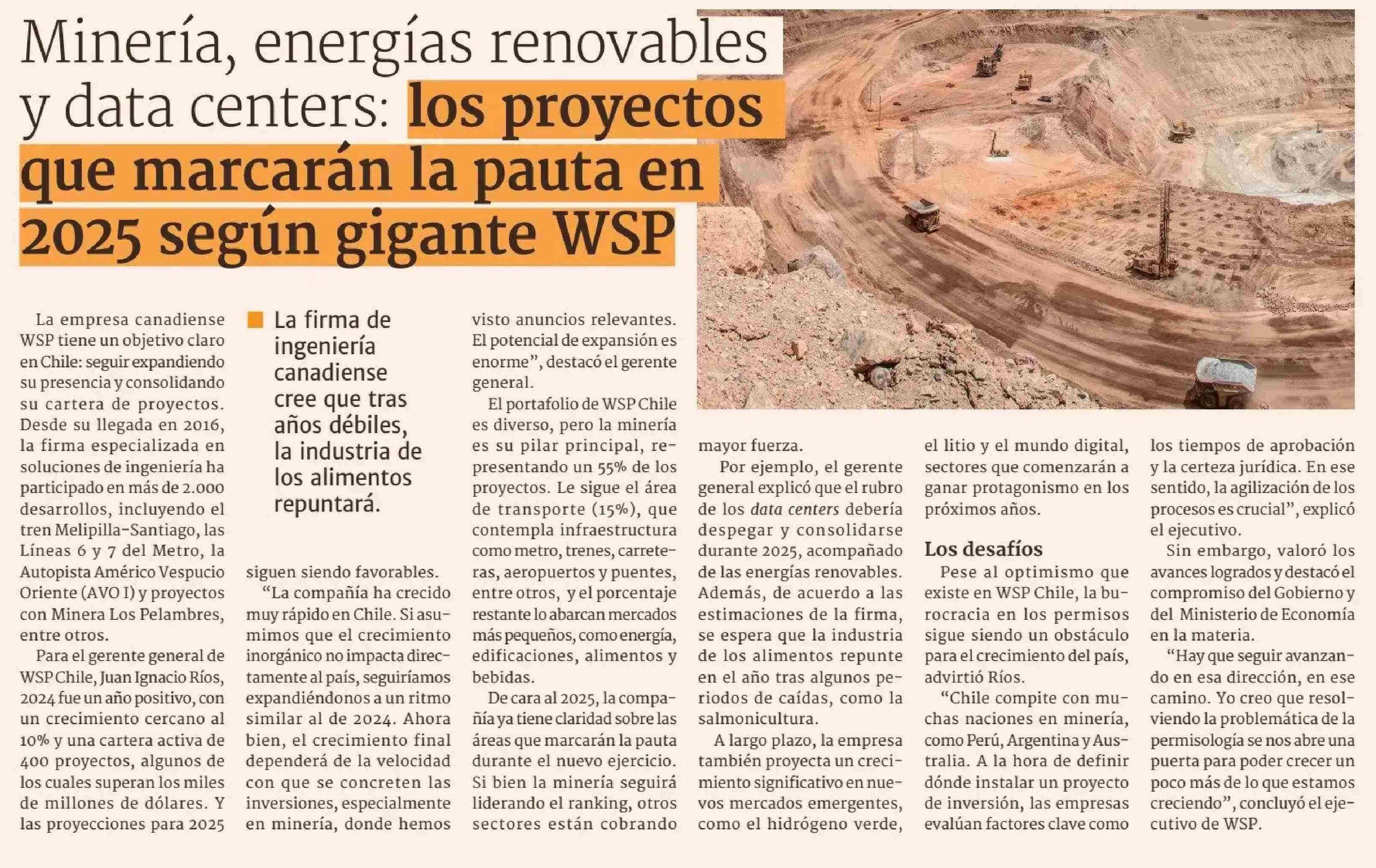 Minería, energías renovables y data centers: los proyectos que marcarán la pauta en 2025 según gigante WSP