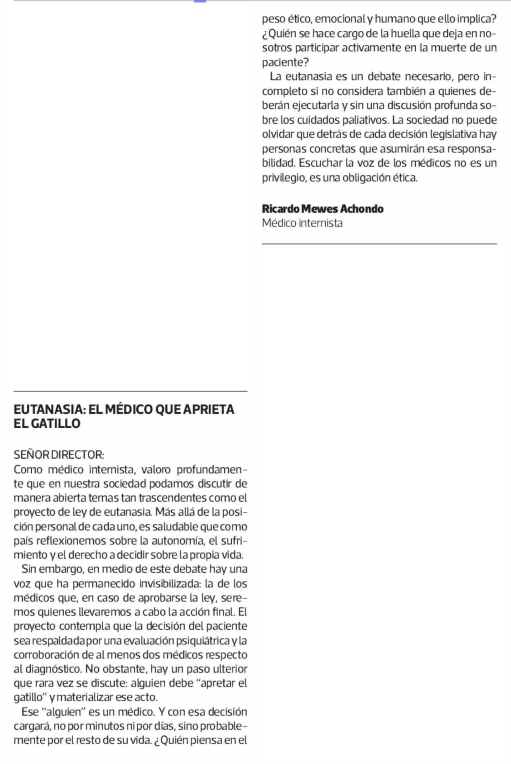 Cartas: EUTANASIA: EL MÉDICO QUE APRIETA EL GATILLO