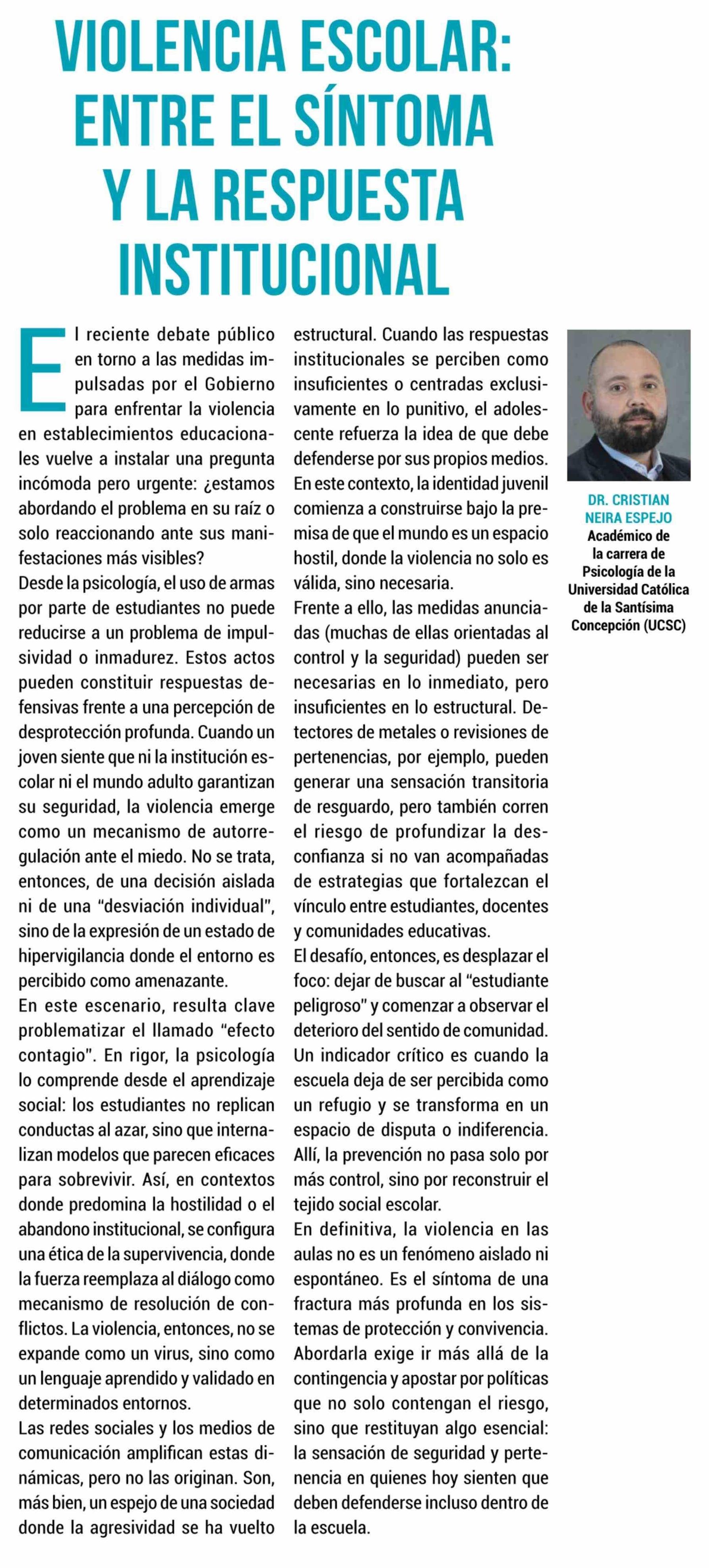 VIOLENCIA ESCOLAR: ENTRE EL SÍNTOMA Y LA RESPUESTA INSTITUCIONAL