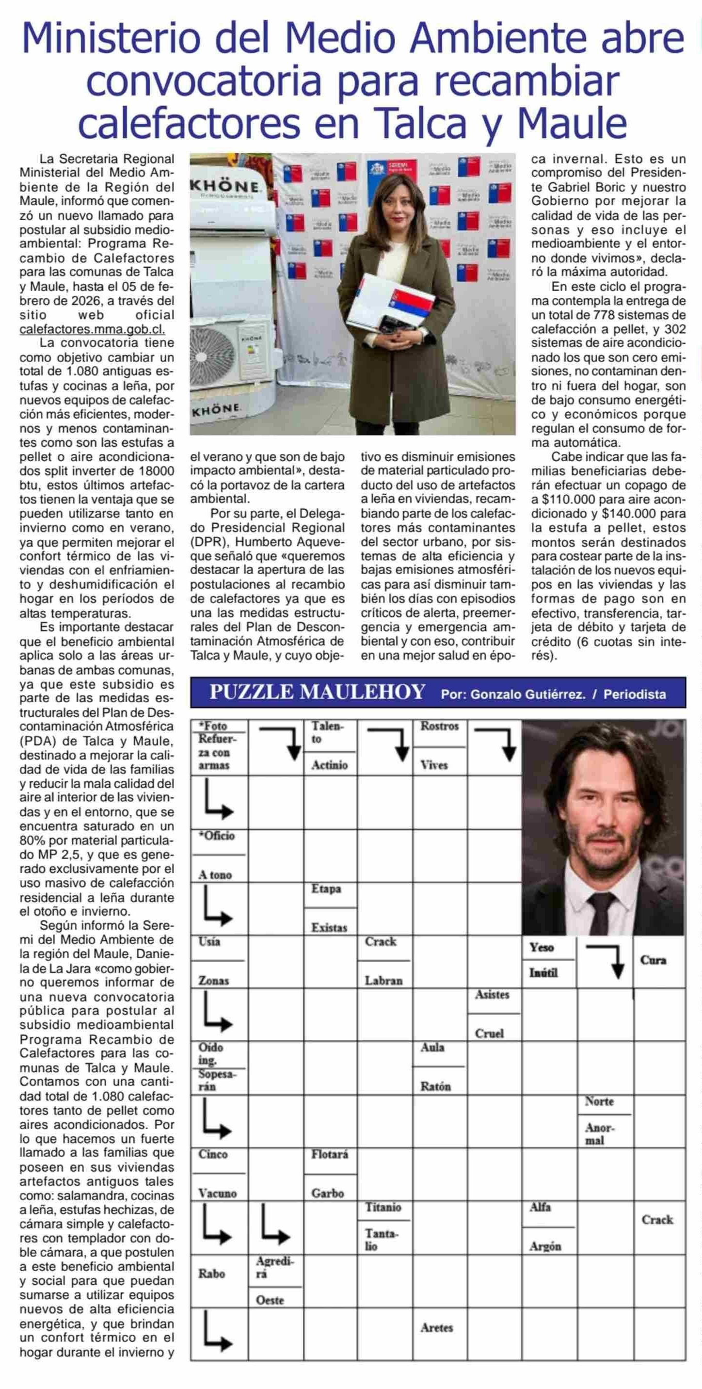 Ministerio del Medio Ambiente abre convocatoria para recambiar calefactores en Talca y Maule