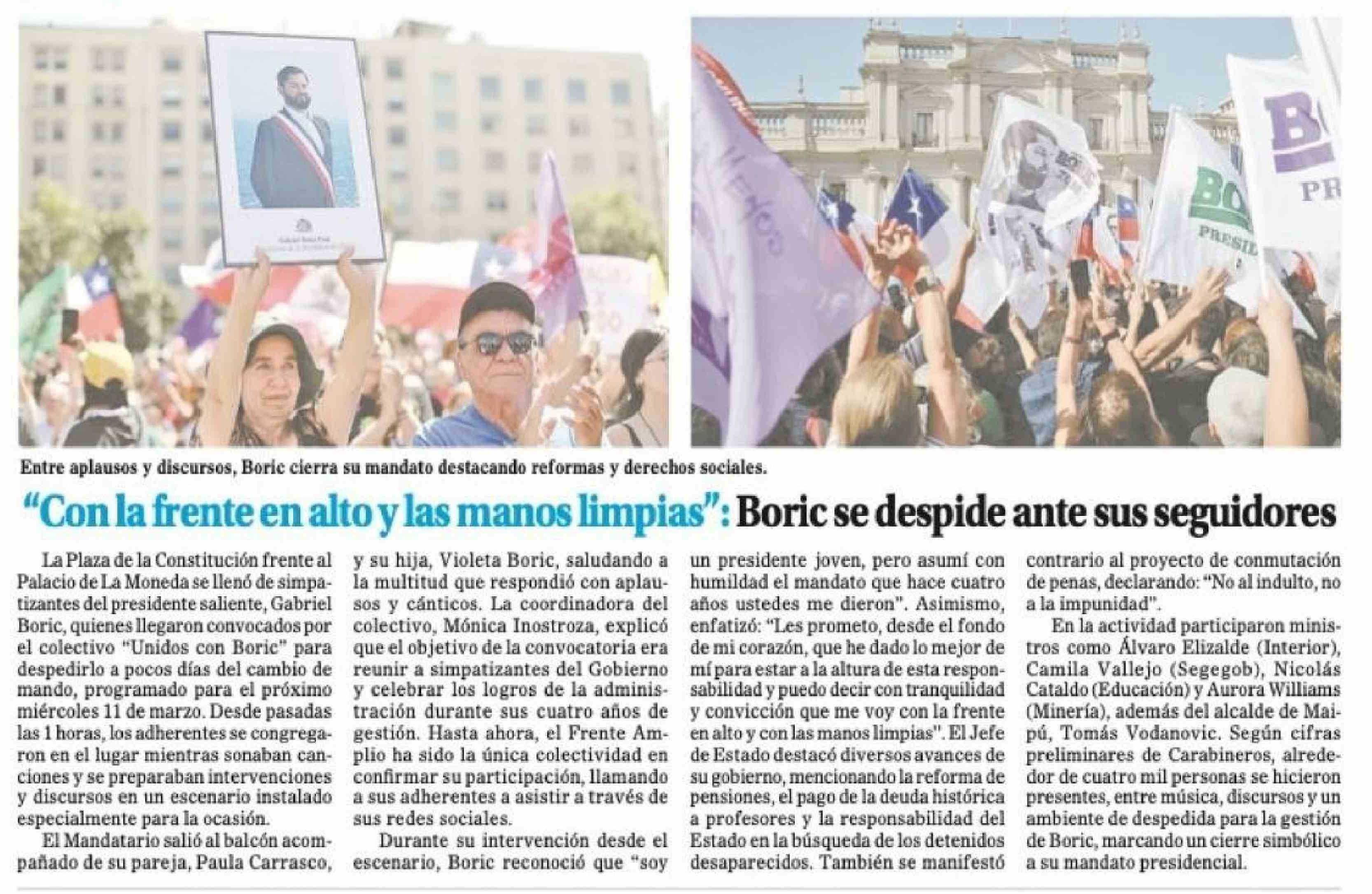 "Con la frente en alto y las manos limpias": Boric se despide ante sus seguidores