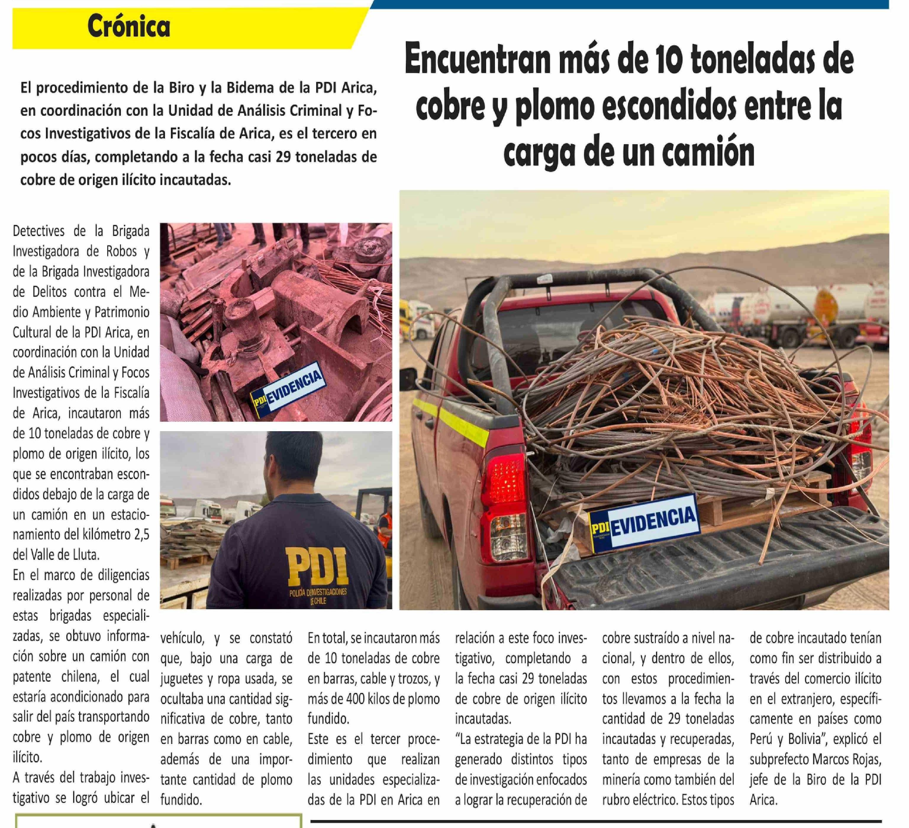 Encuentran más de 10 toneladas de cobre y plomo escondidos entre la carga de un camión