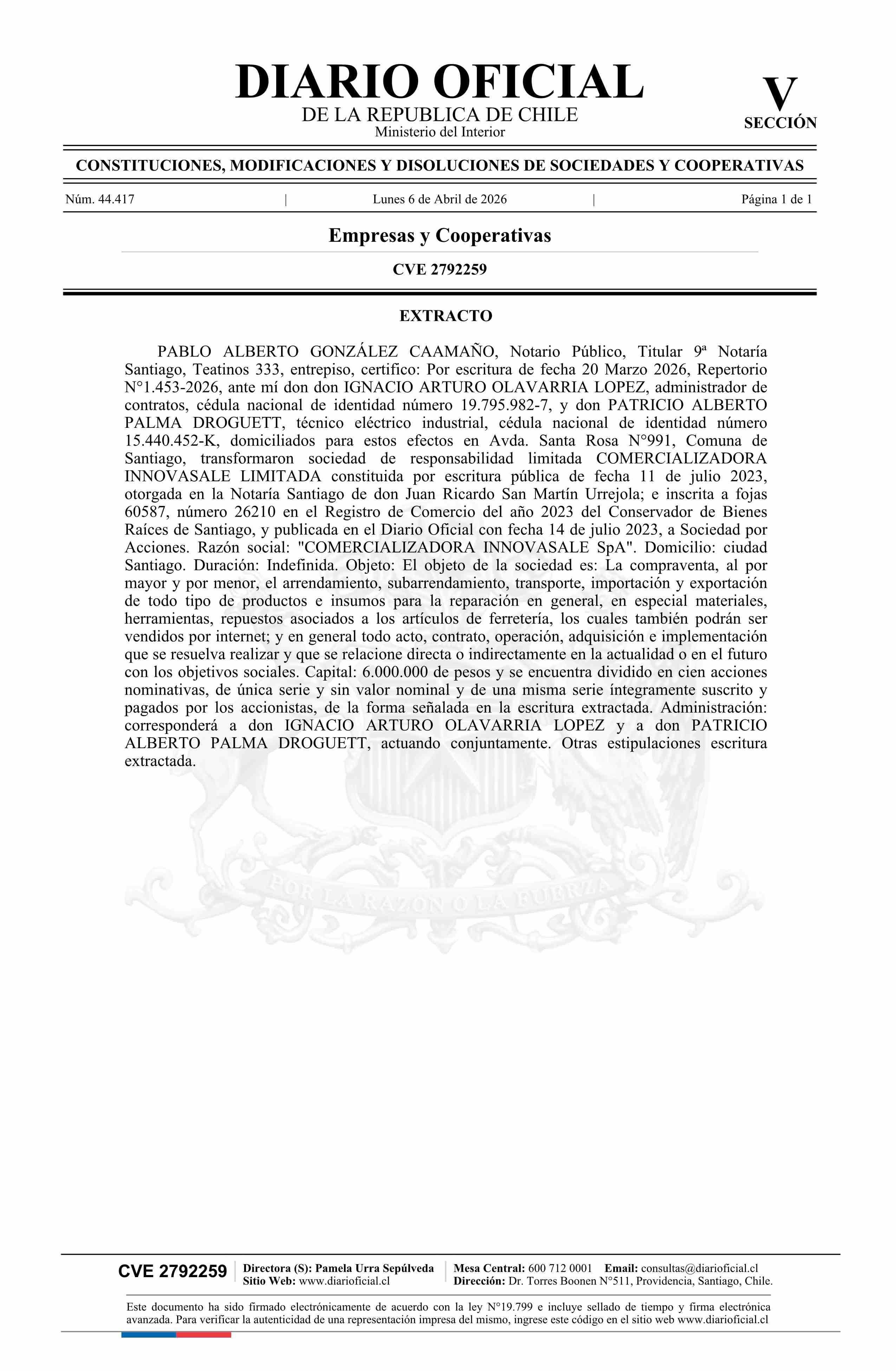 COMERCIALIZADORA INNOVASALE LIMITADA 77.802.307-5*