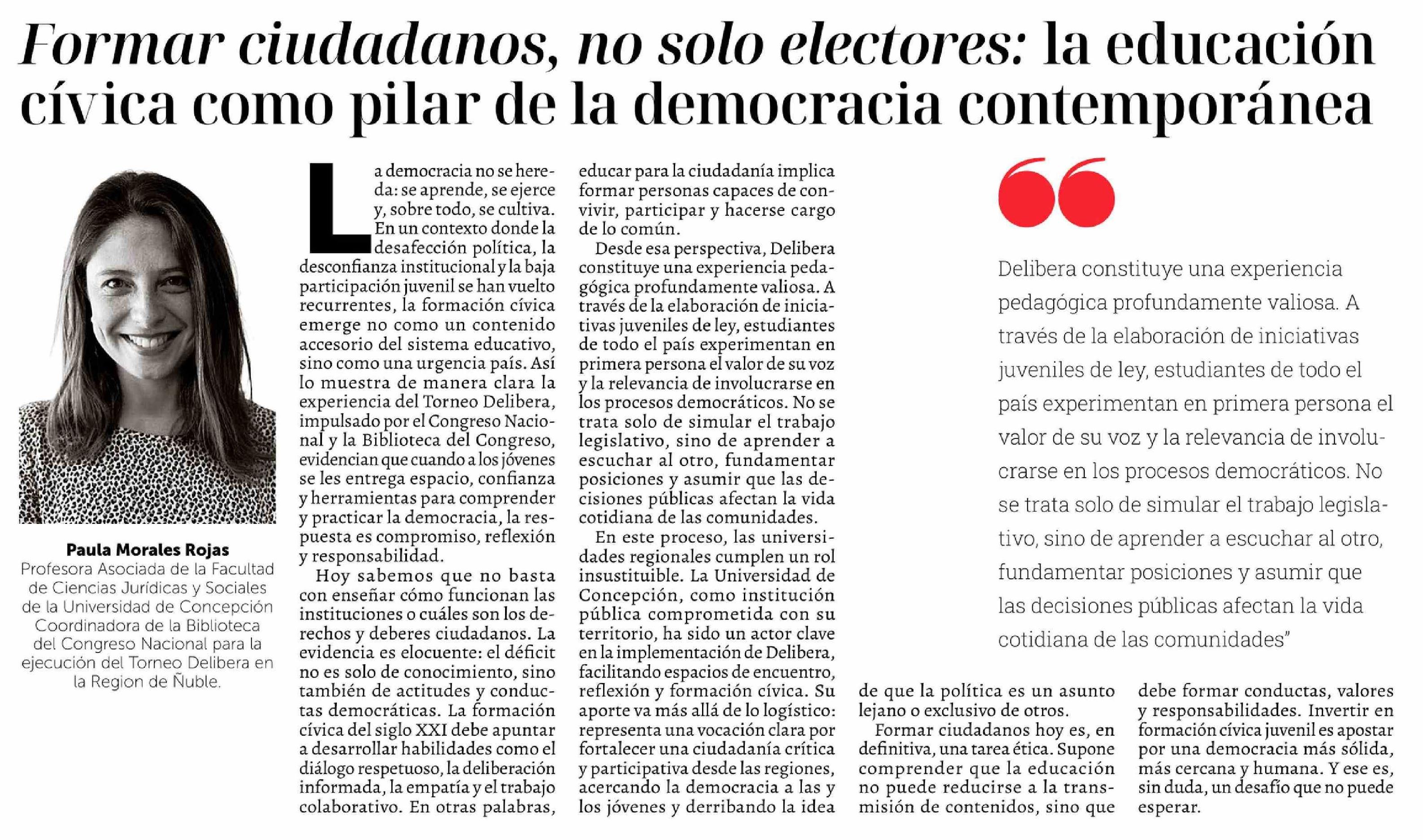 Columnas de Opinión: Formar ciudadanos, no solo electores: la educación cívica como pilar de la democracia contemporánea