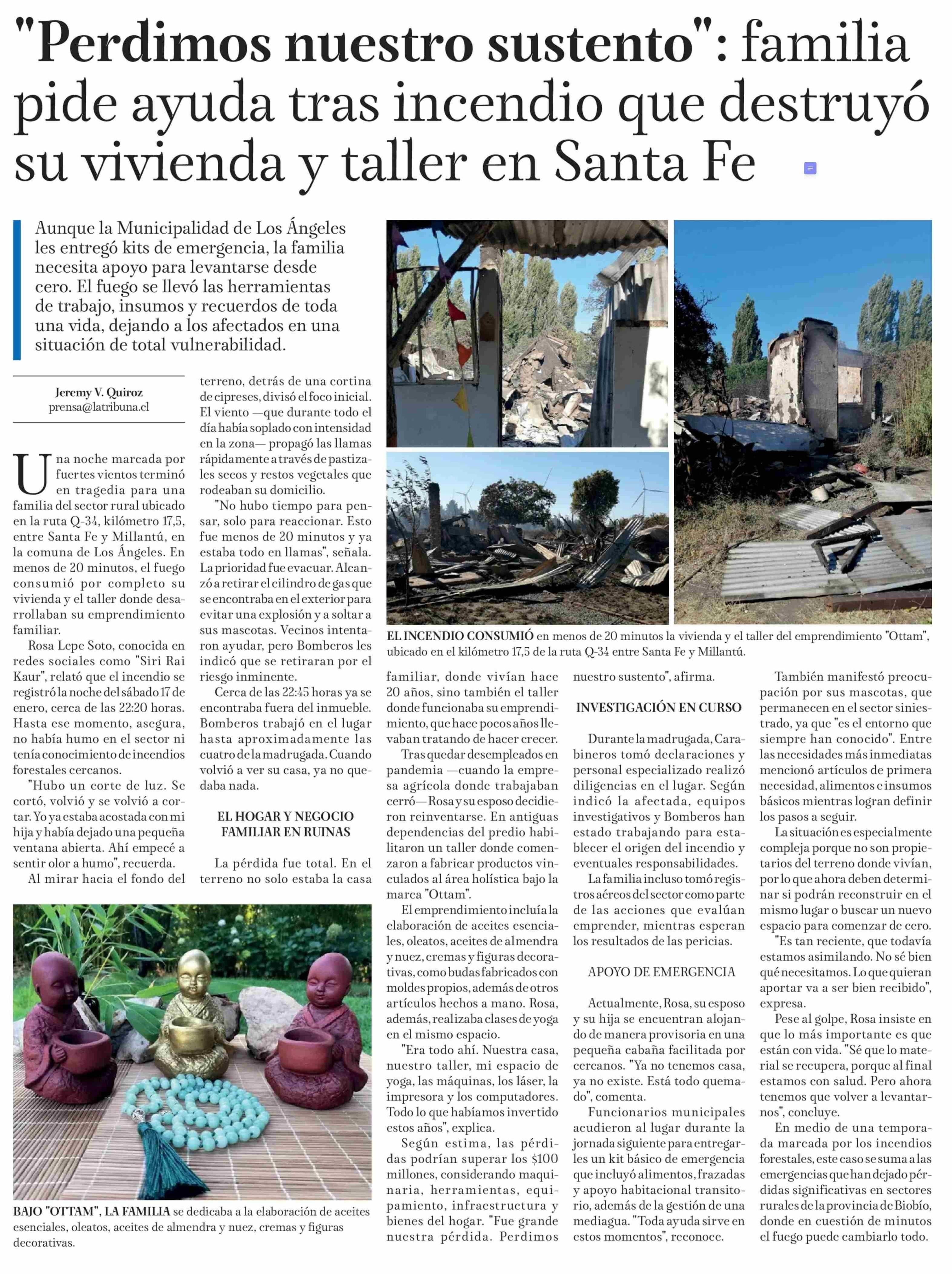 "Perdimos nuestro sustento": familia pide ayuda tras incendio que destruyó su vivienda y taller en Santa Fe