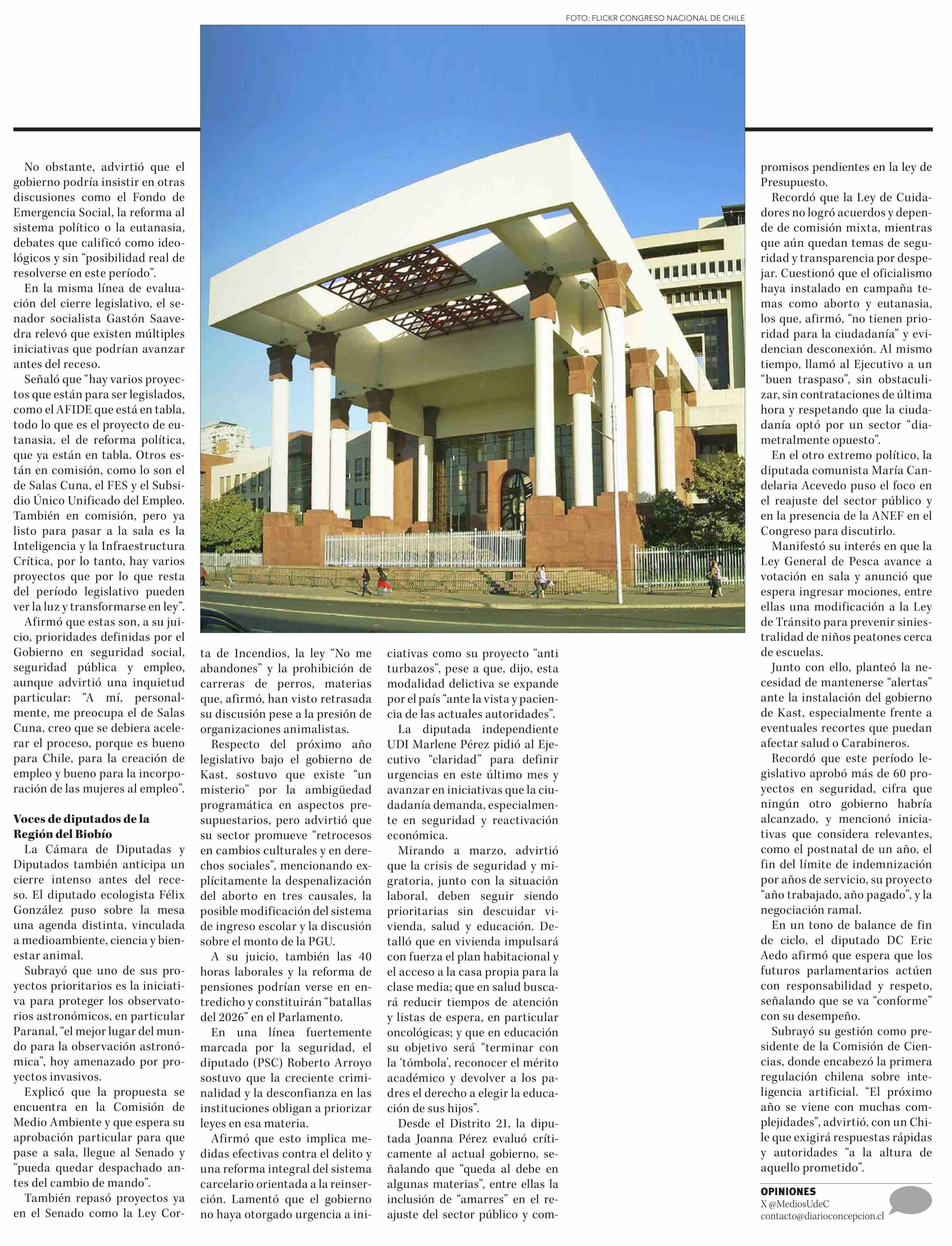 Receso legislativo: parlamentarios del Biobío fijan urgencias antes del cambio de Gobierno