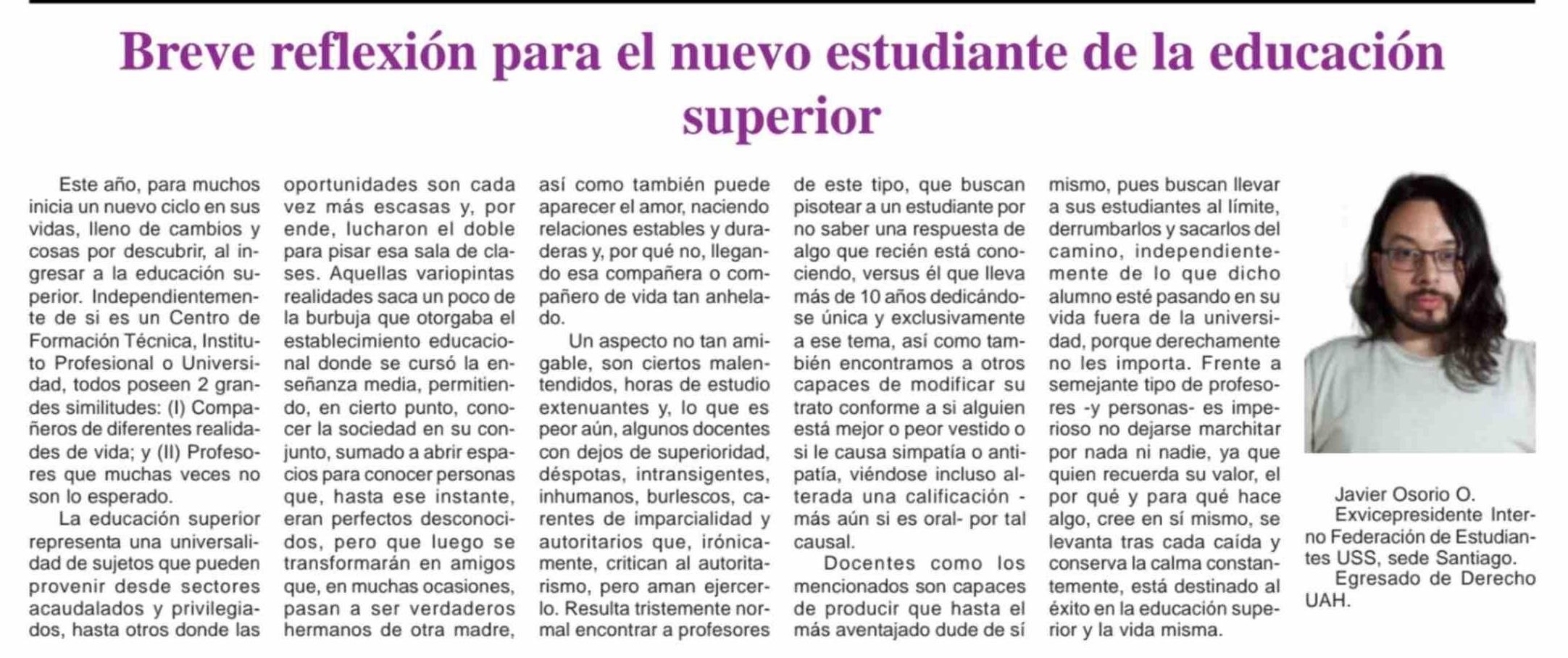 Breve reflexión para el nuevo estudiante de la educación superior