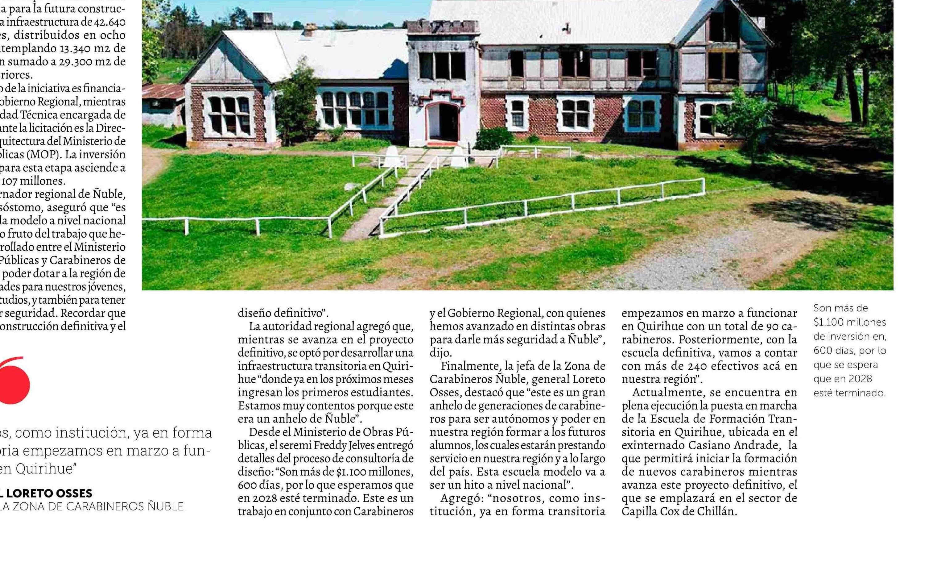 Inician licitación para el diseño de la Escuela de Carabineros Nuble