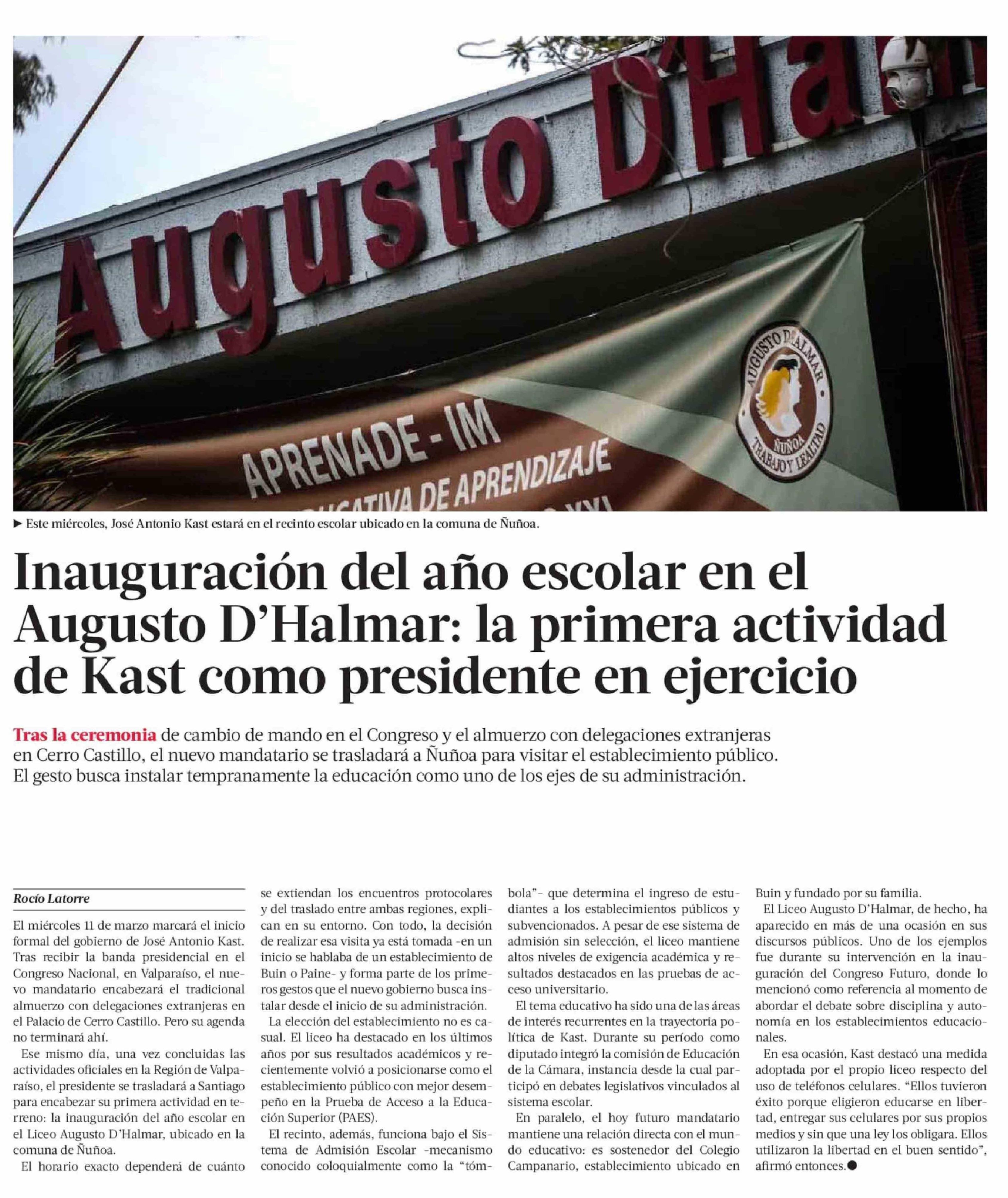 Inauguración del año escolar en el Augusto D'Halmar: la primera actividad de Kast como presidente en ejercicio