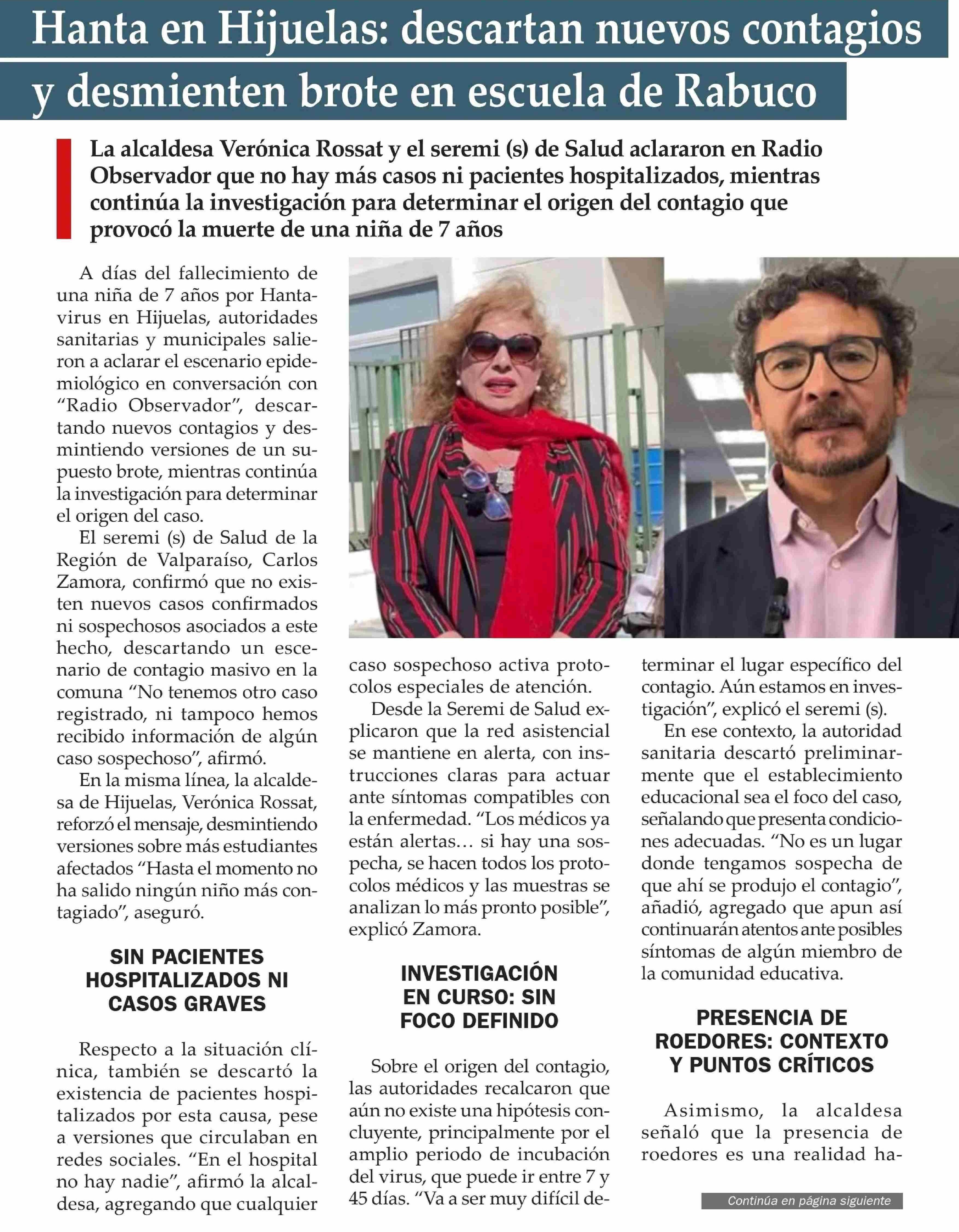 Hanta en Hijuelas: descartan nuevos contagios y desmienten brote en escuela de Rabuco