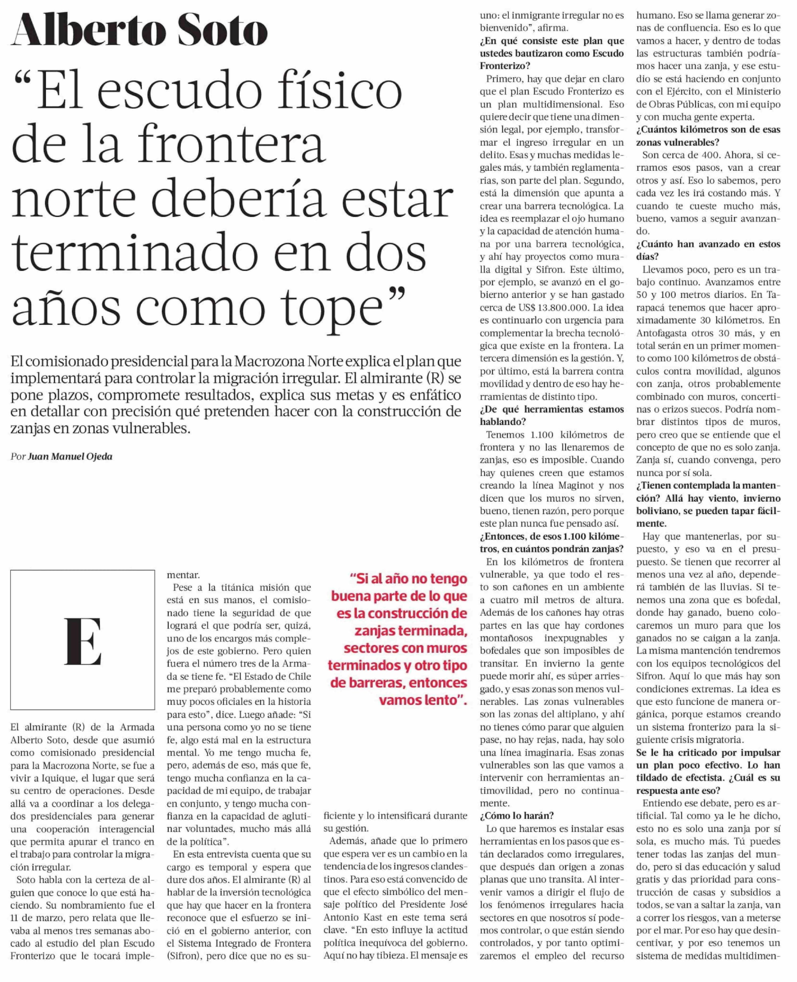 Alberto Soto "El escudo físico de la frontera norte debería estar terminado en dos años como tope"