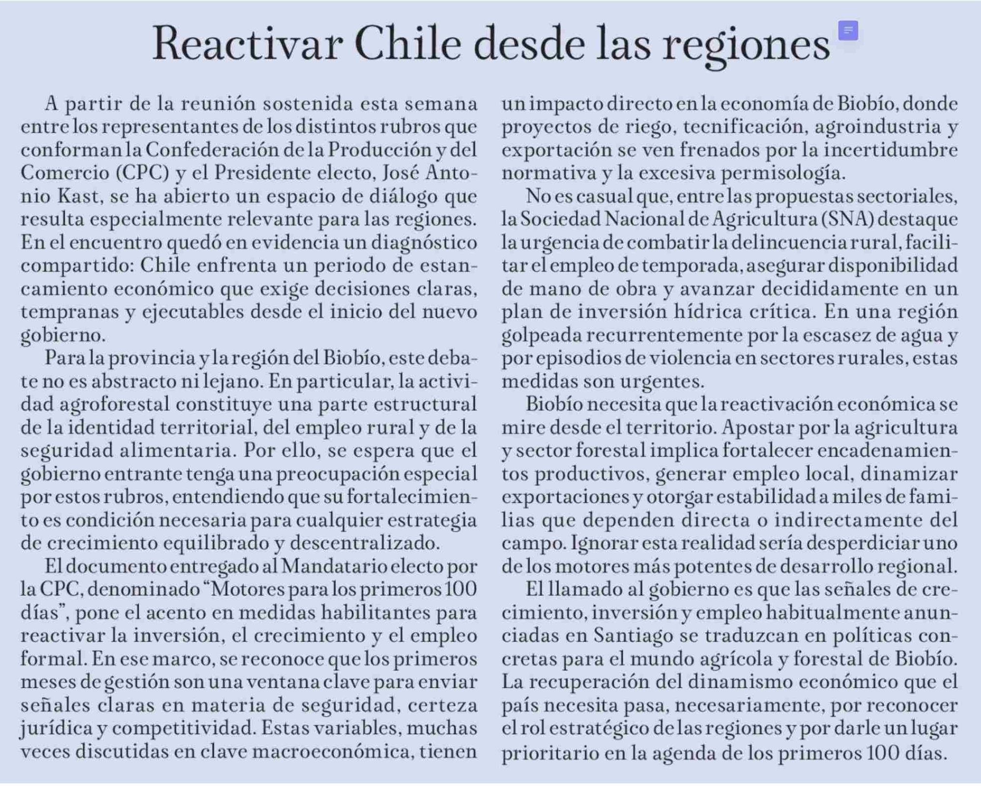 Editorial: Reactivar Chile desde las regiones