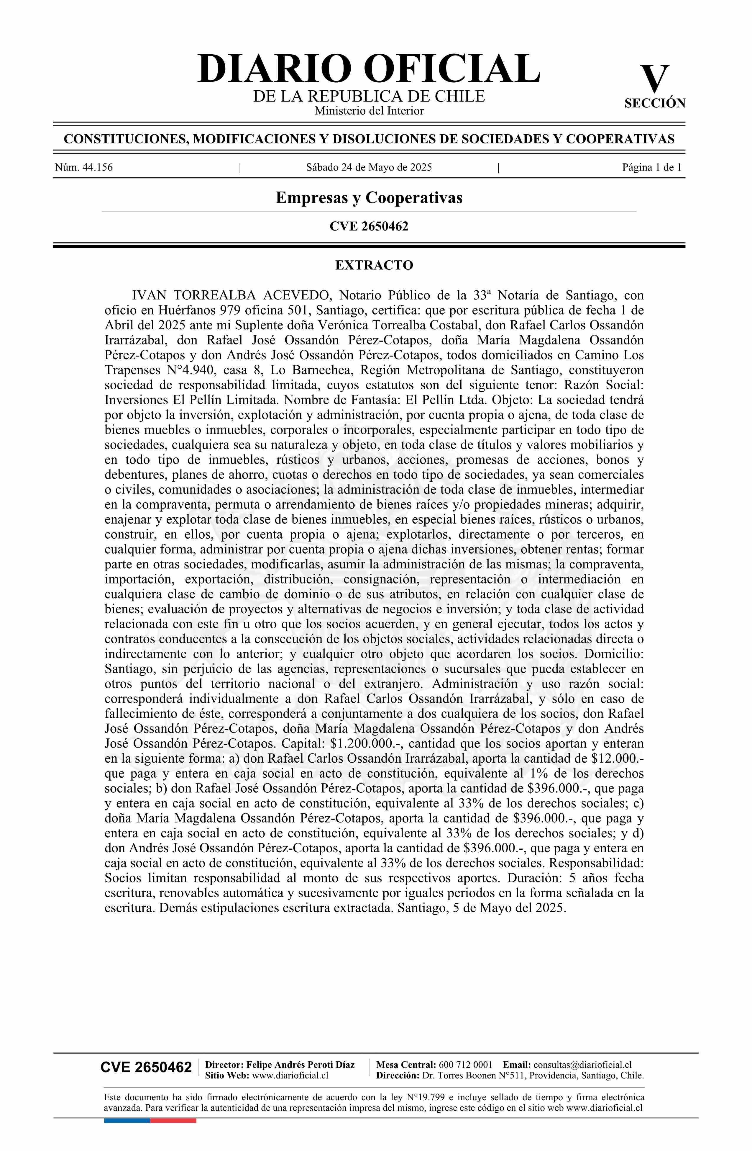 Inversiones El Pellín Limitada
