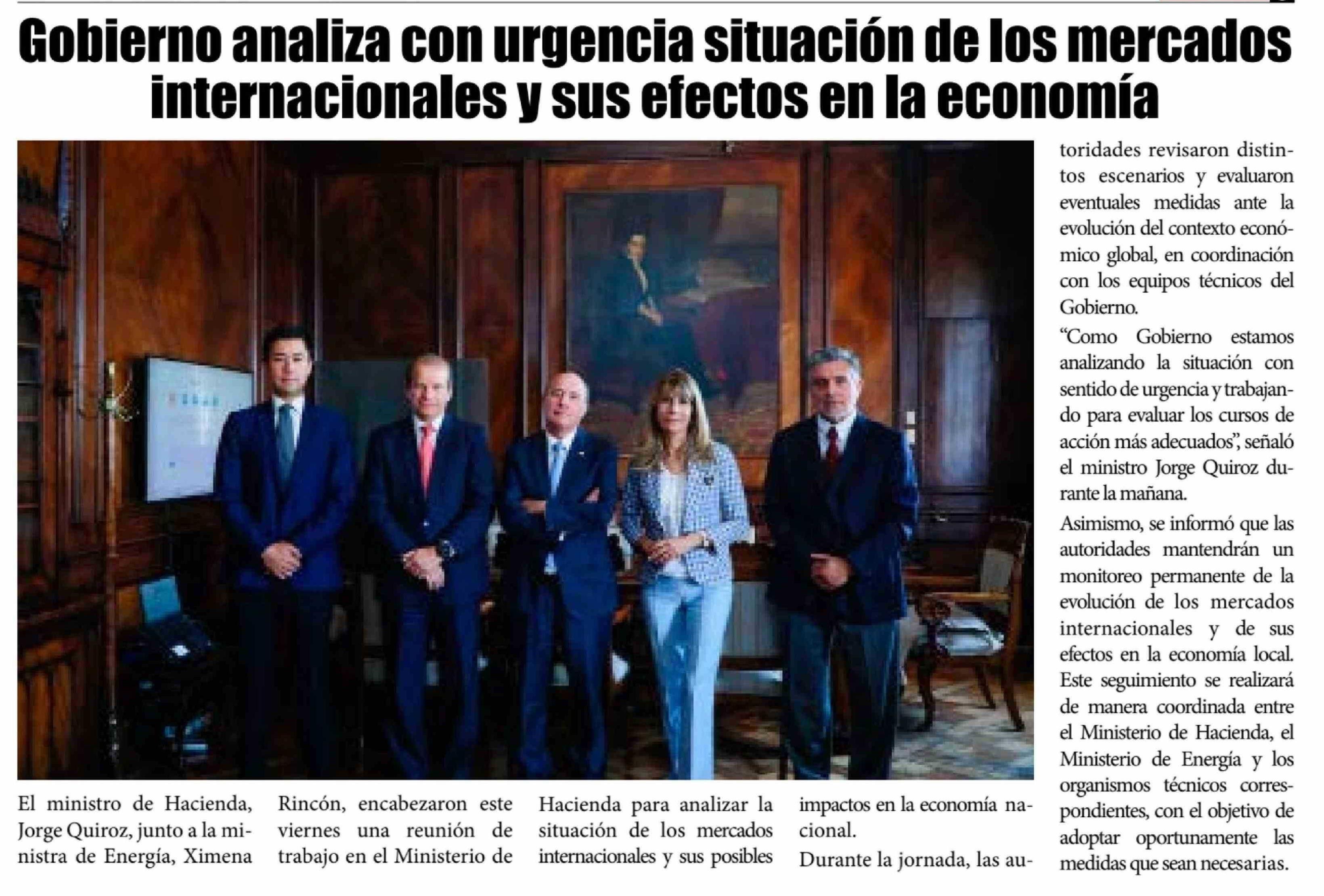 Gobierno analiza con urgencia situación de los mercados internacionales y sus efectos en la economía