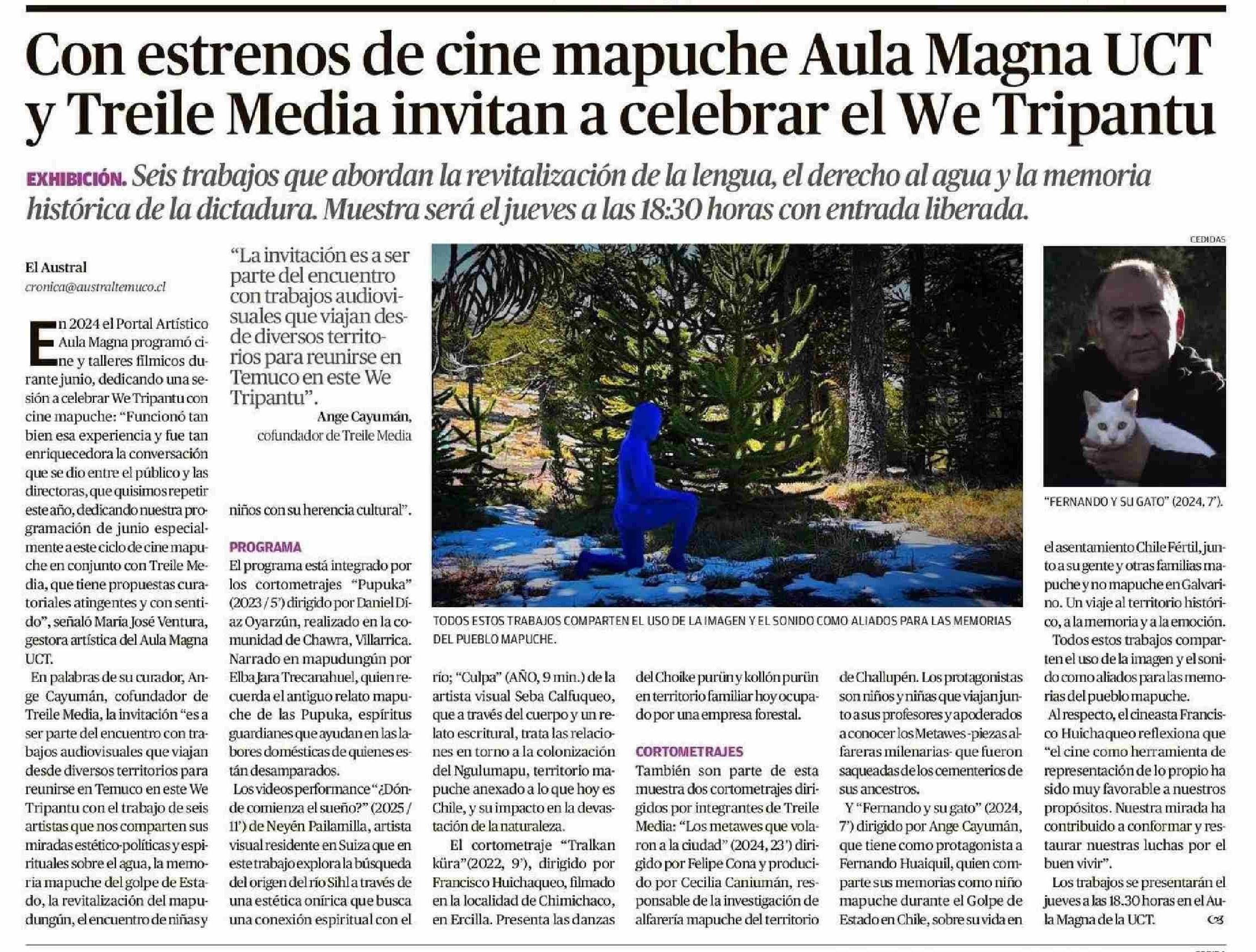 Con estrenos de cine mapuche Aula Magna UCT y Treile Media invitan a celebrar el We Tripantu