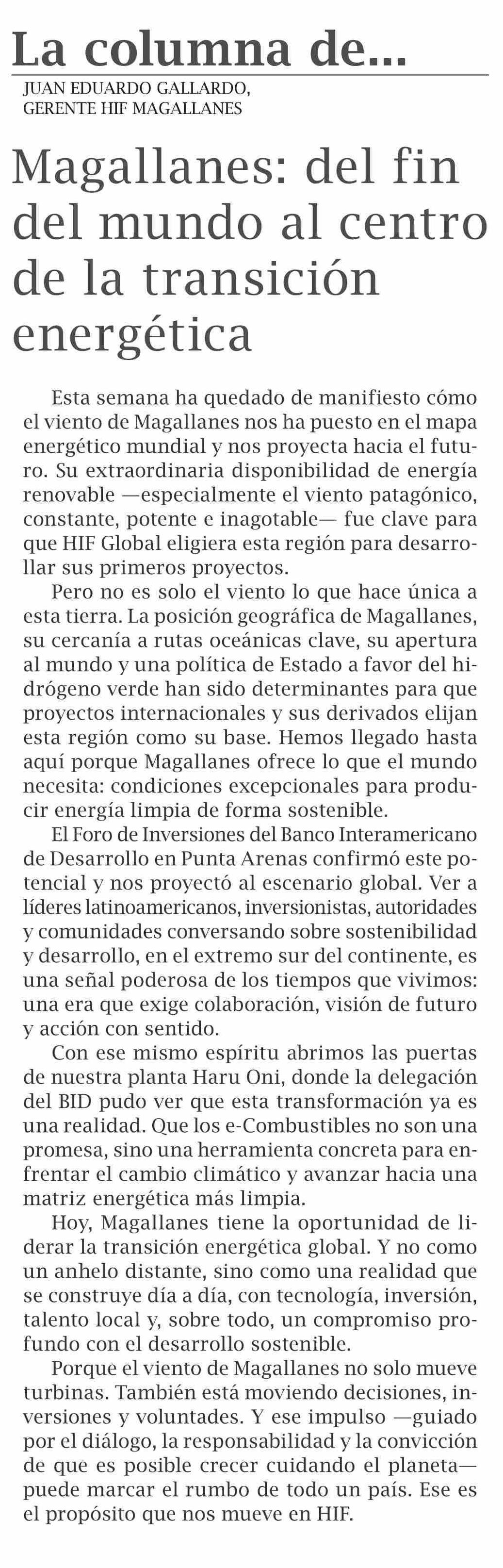 COLUMNAS DE OPINIÓN: Magallanes: del fin del mundo al centro de la transición energética