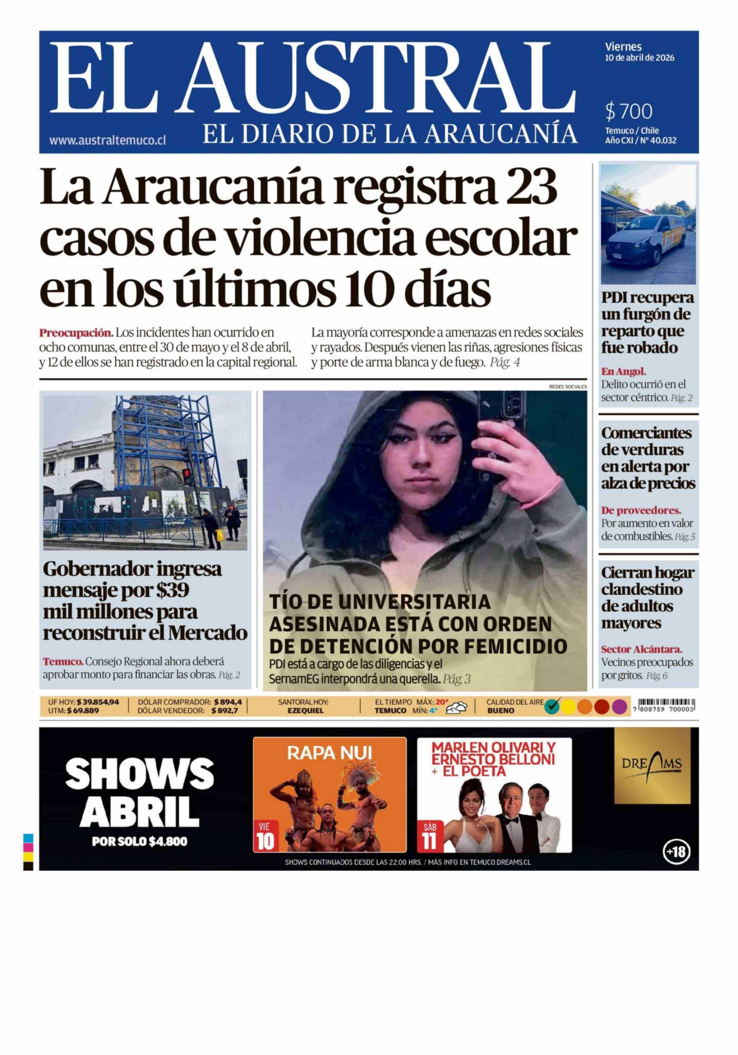 PORTADA EL AUSTRAL DE LA ARAUCANÍA CHILE