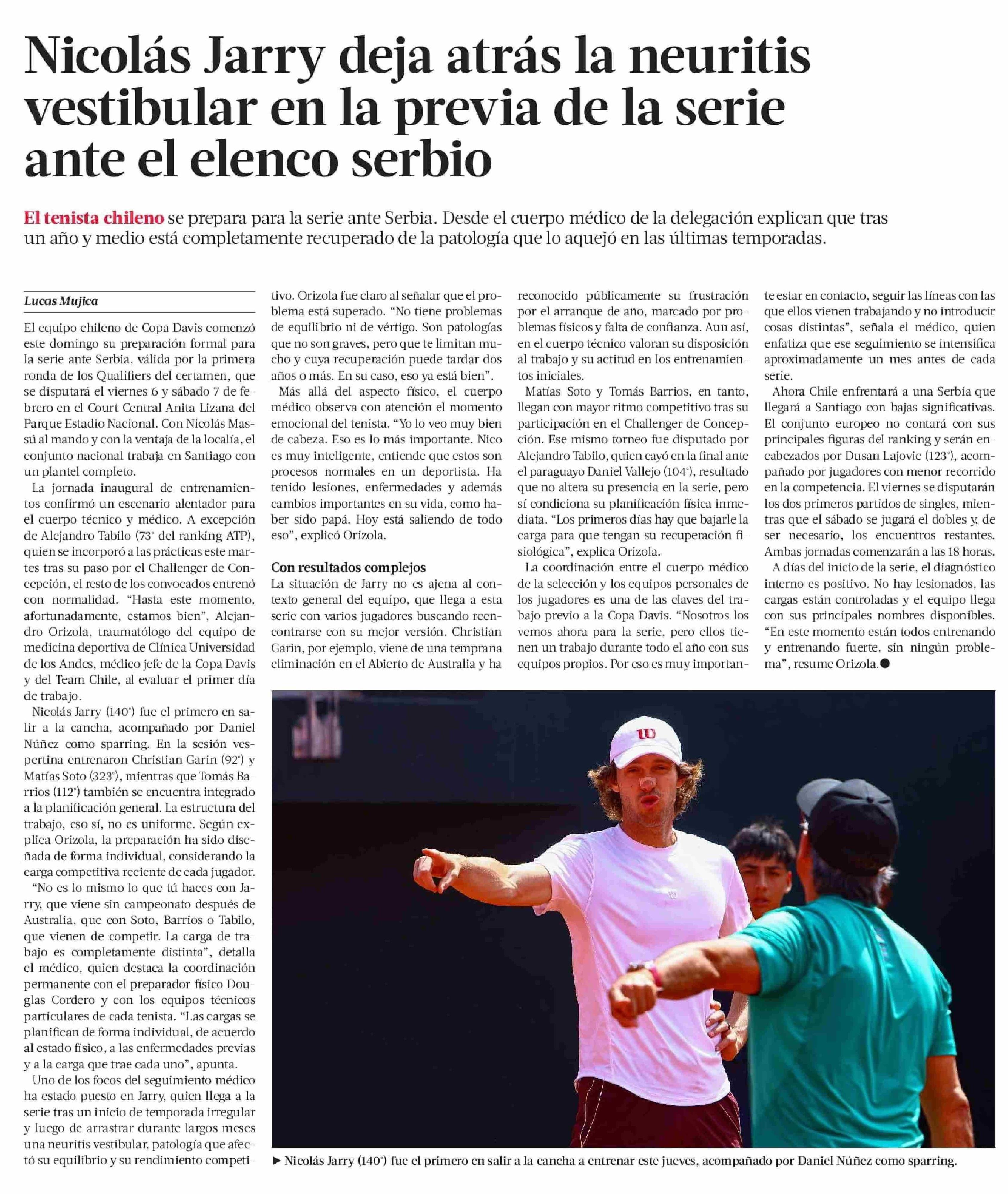Nicolás Jarry deja atrás la neuritis vestibular en la previa de la serie ante el elenco serbio