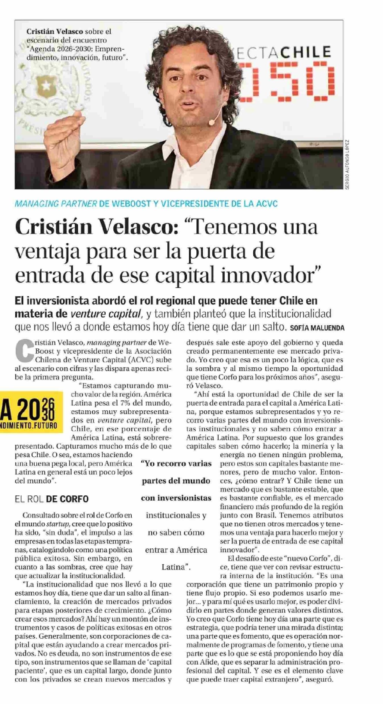 Cristián Velasco: “Tenemos una ventaja para ser la puerta de entrada de ese capital innovador”