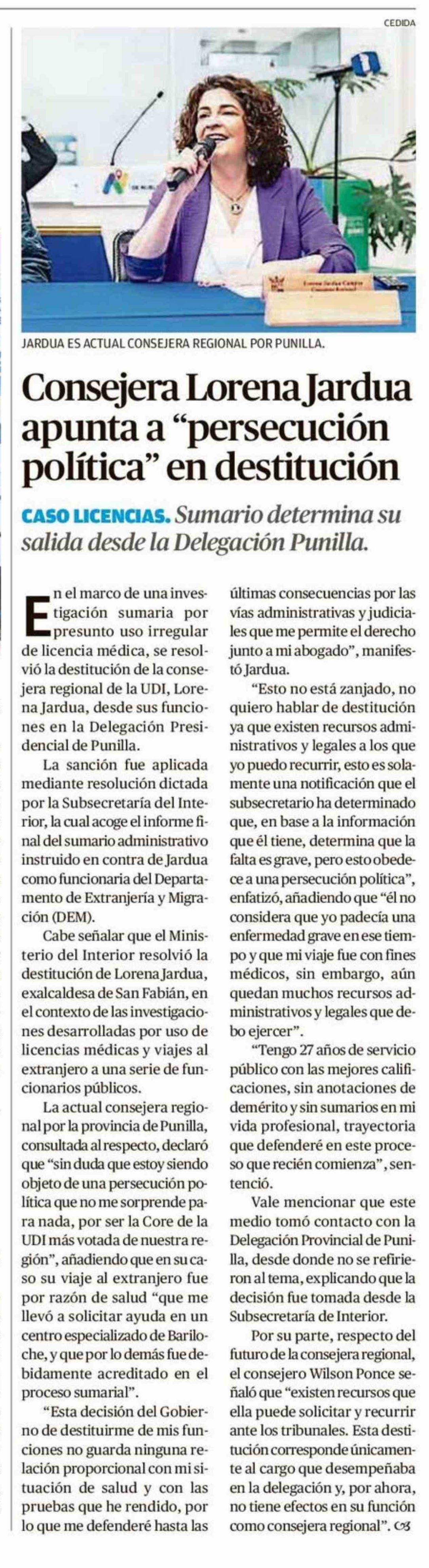 Título: Consejera Lorena Jardua apunta a "persecución política" en destitución
