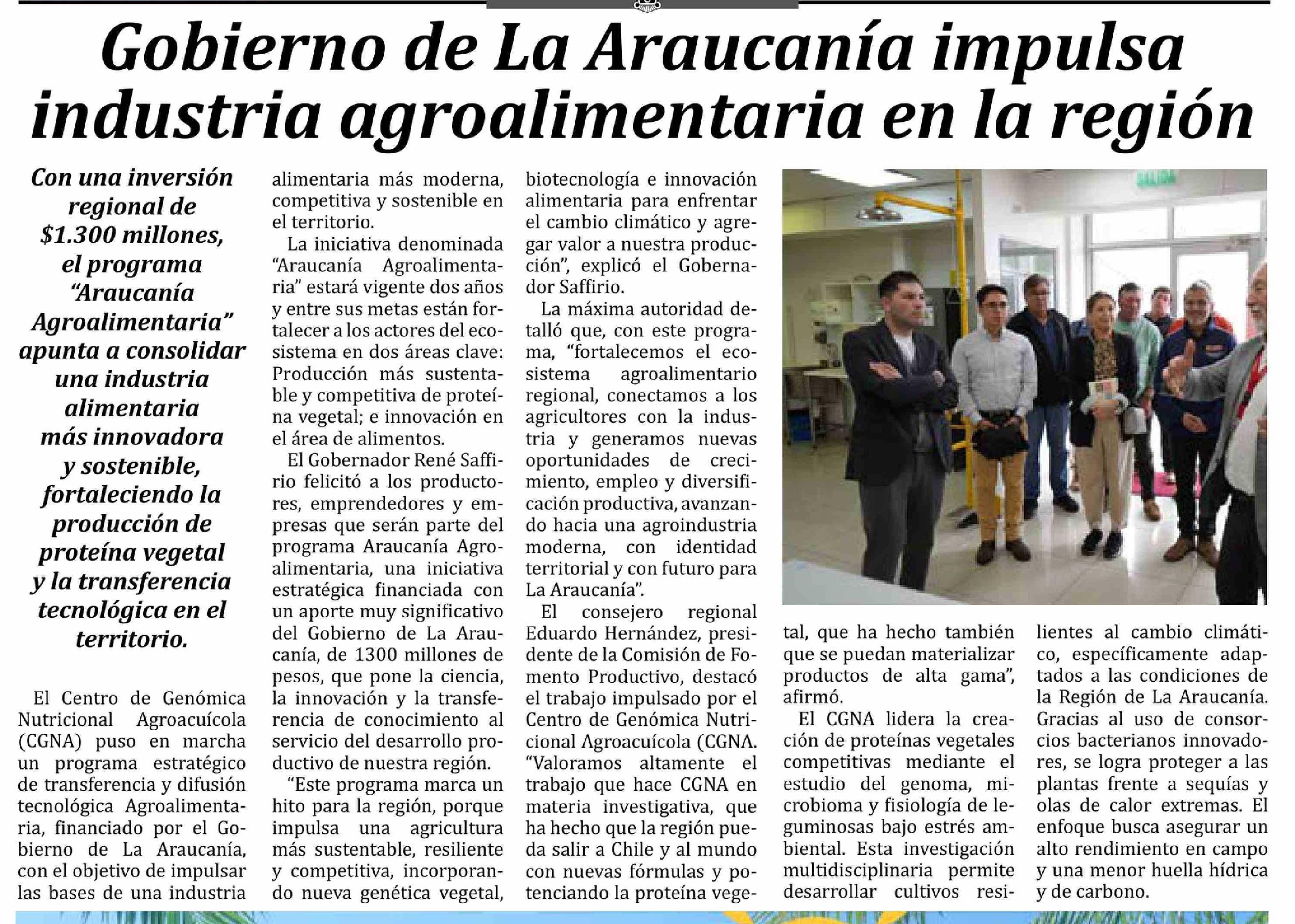 Gobierno de La Araucanía impulsa industria agroalimentaria en la región