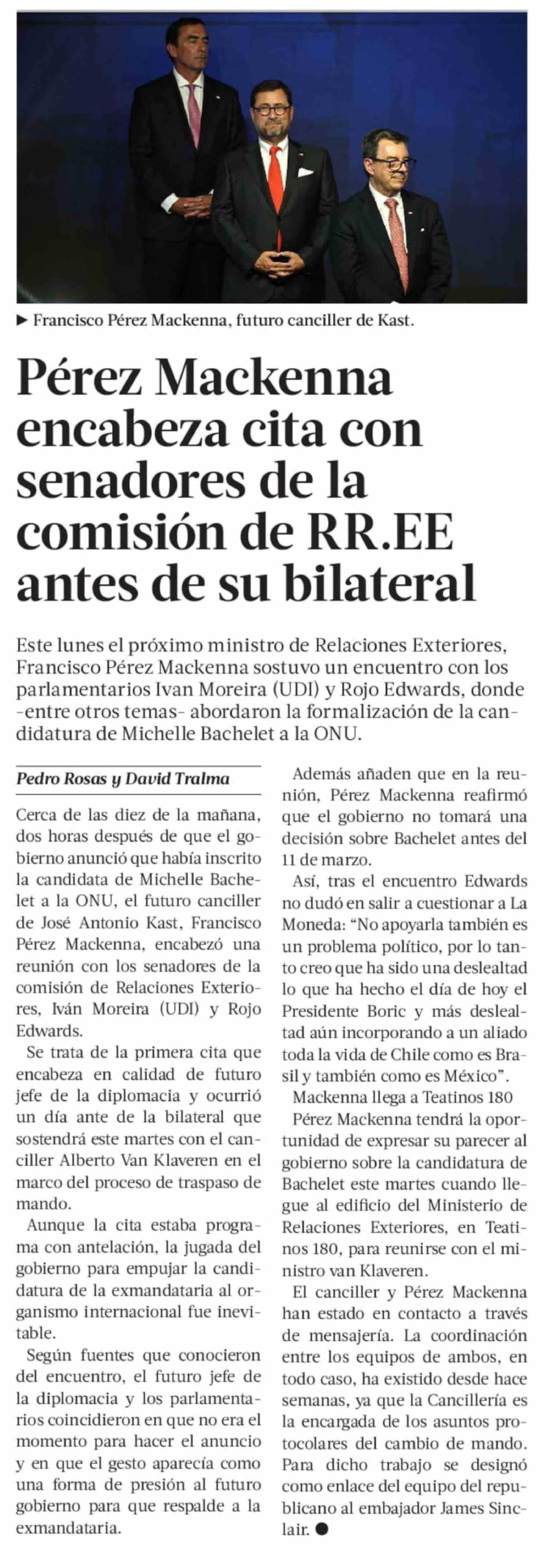 Pérez Mackenna encabeza cita con senadores de la comisión de RR.EE antes de su bilateral