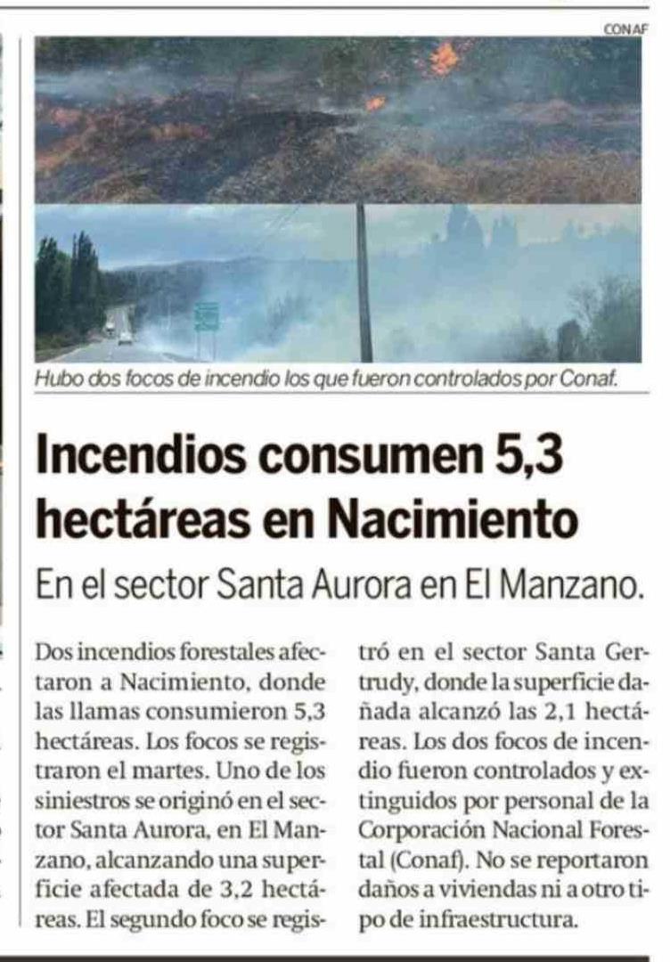 Incendios consumen 5,3 hectáreas en Nacimiento