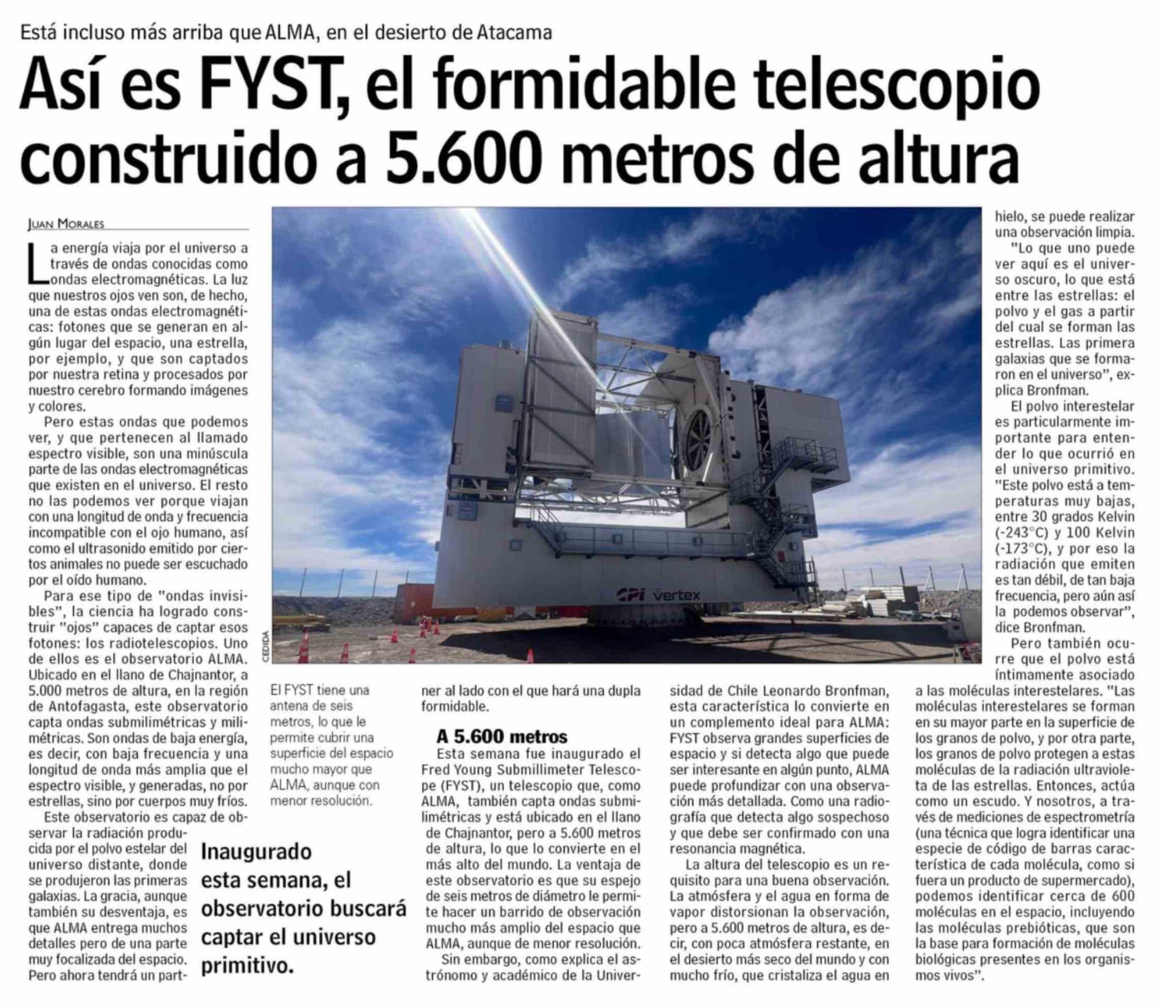 Así es FYST, el formidable telescopio construido a 5.600 metros de altura