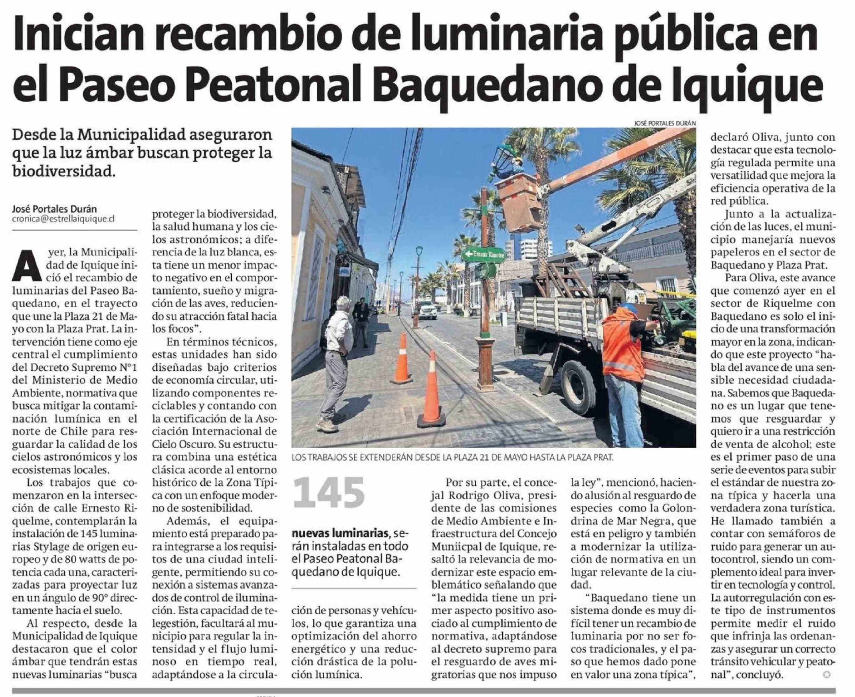 Inician recambio de luminaria pública en el Paseo Peatonal Baquedano de Iquique