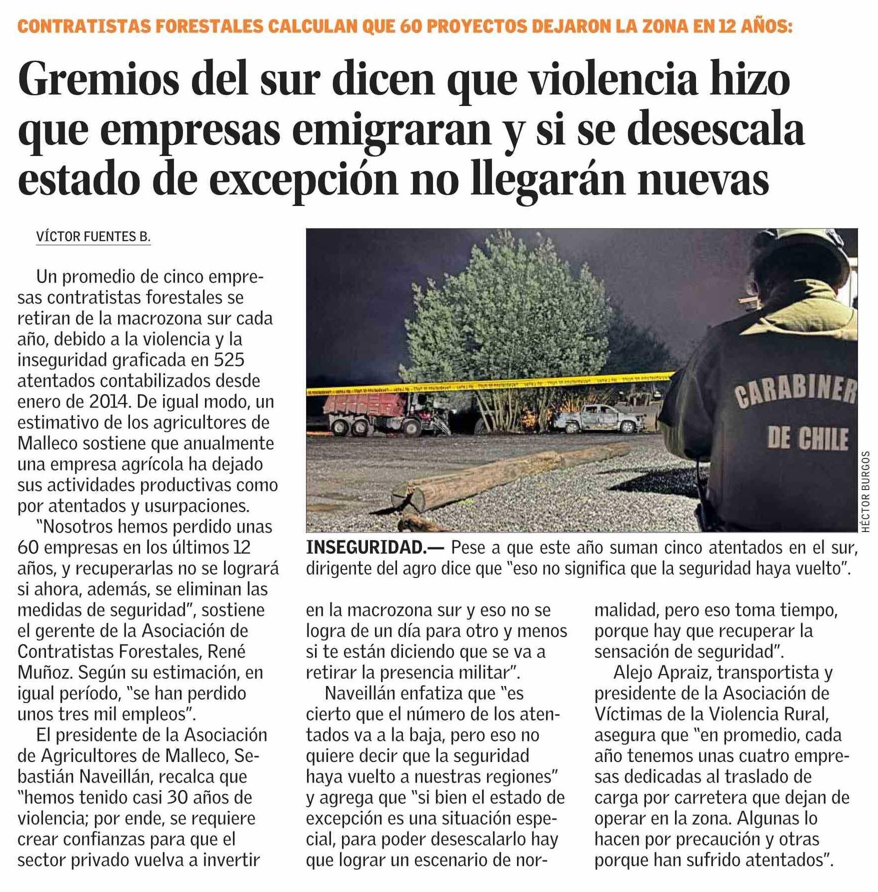 Título: Gremios del sur dicen que violencia hizo que empresas emigraran y si se desescala estado de excepción no llegarán nuevas