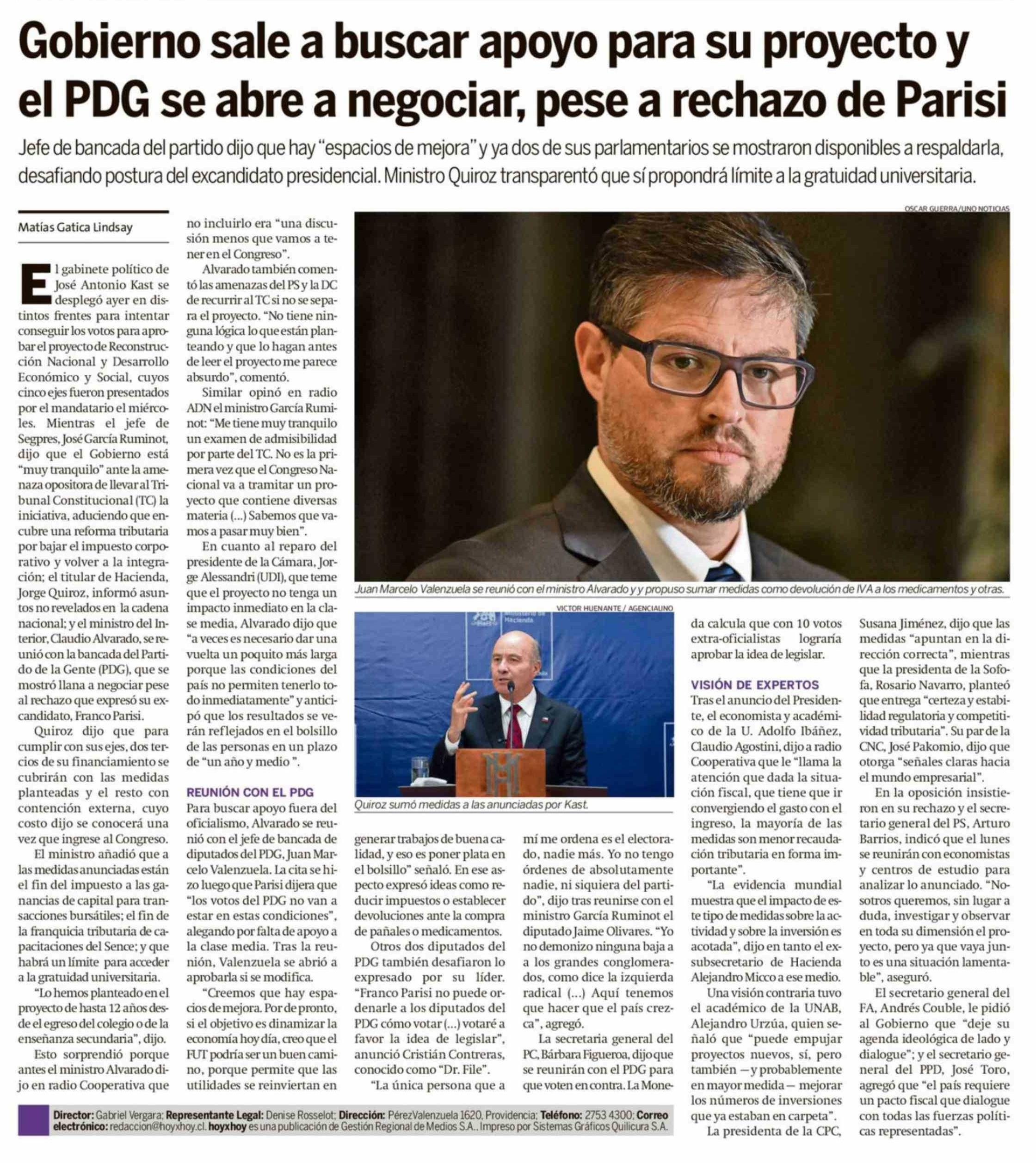 Gobierno sale a buscar apoyo para su proyecto y el PDG se abre a negociar, pese a rechazo de Parisi