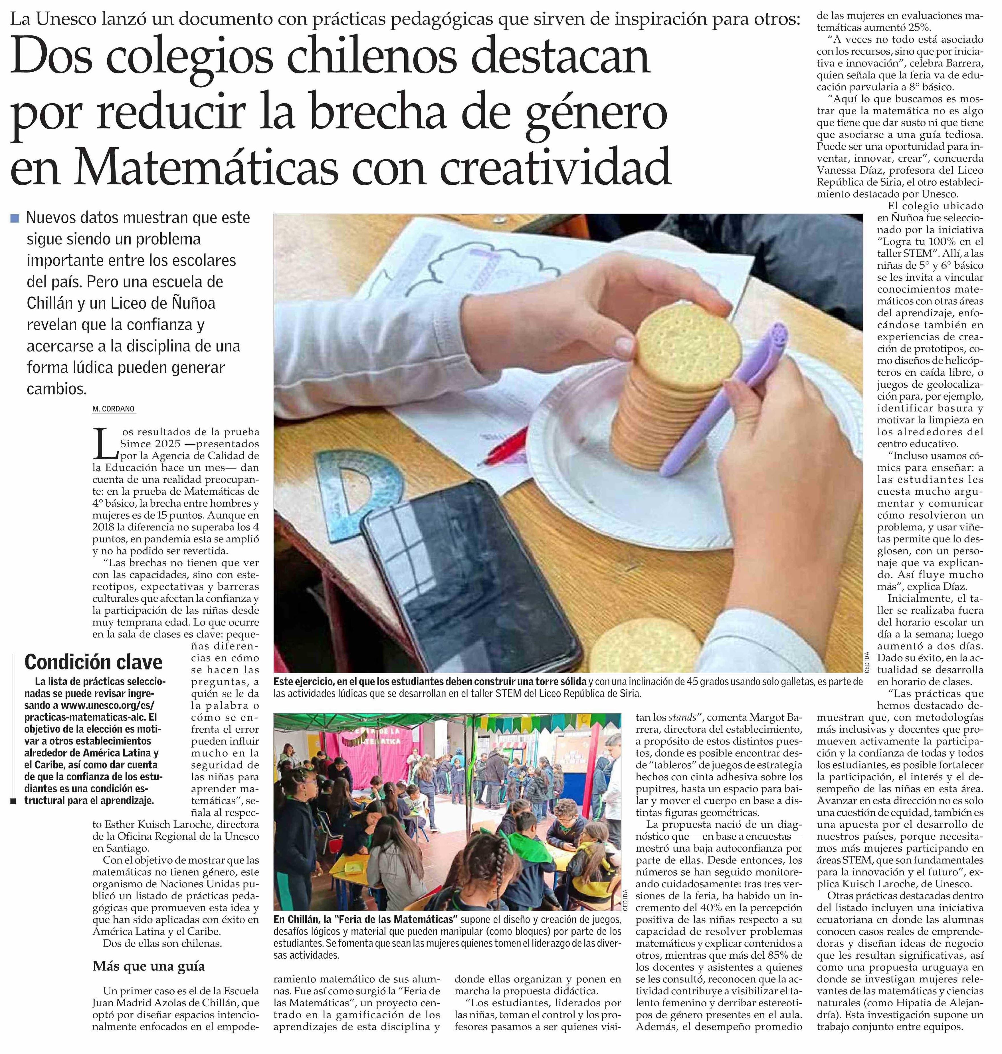 Dos colegios chilenos destacan por reducir la brecha de género en Matemáticas con creatividad