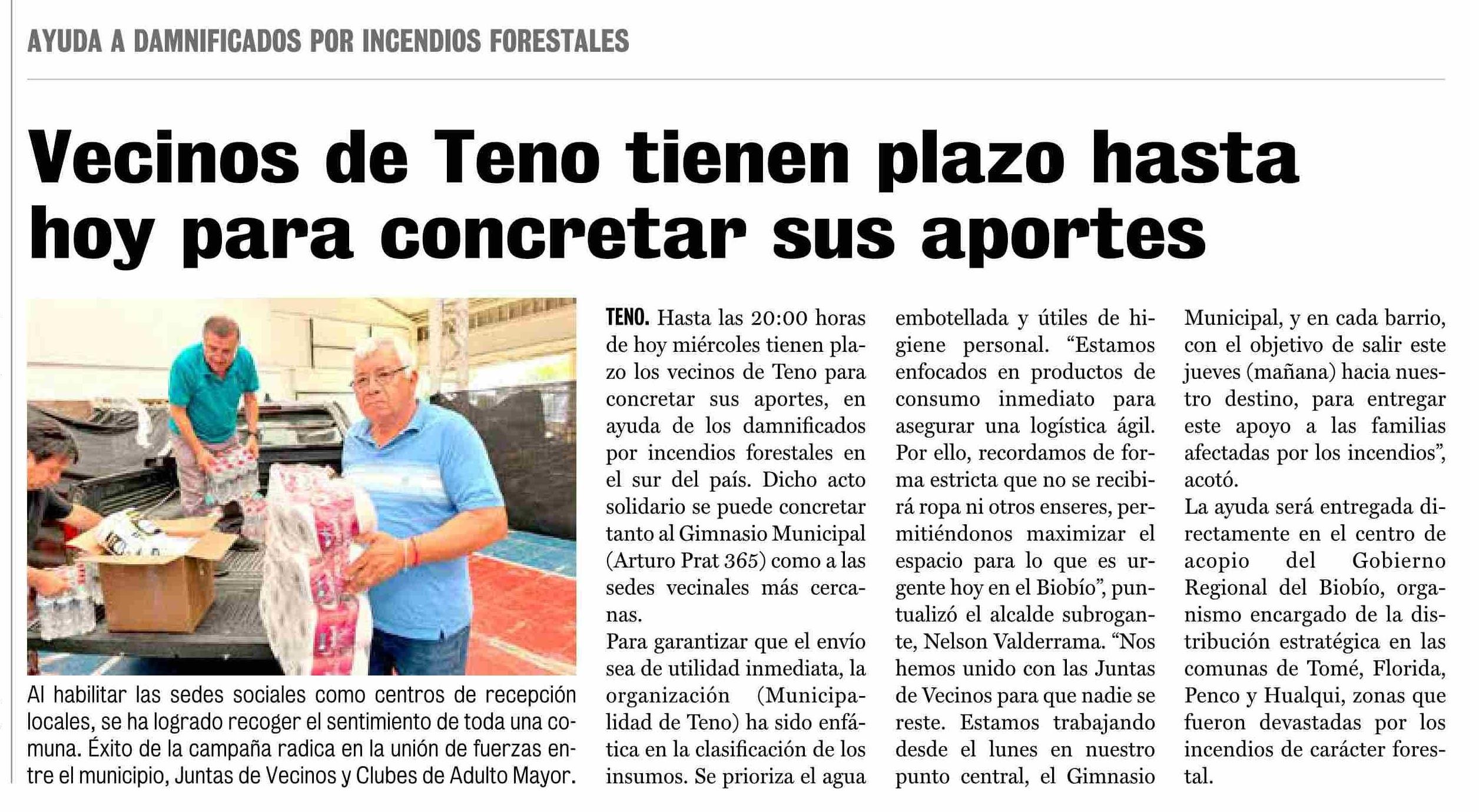 Vecinos de Teno tienen plazo hasta hoy para concretar sus aportes
