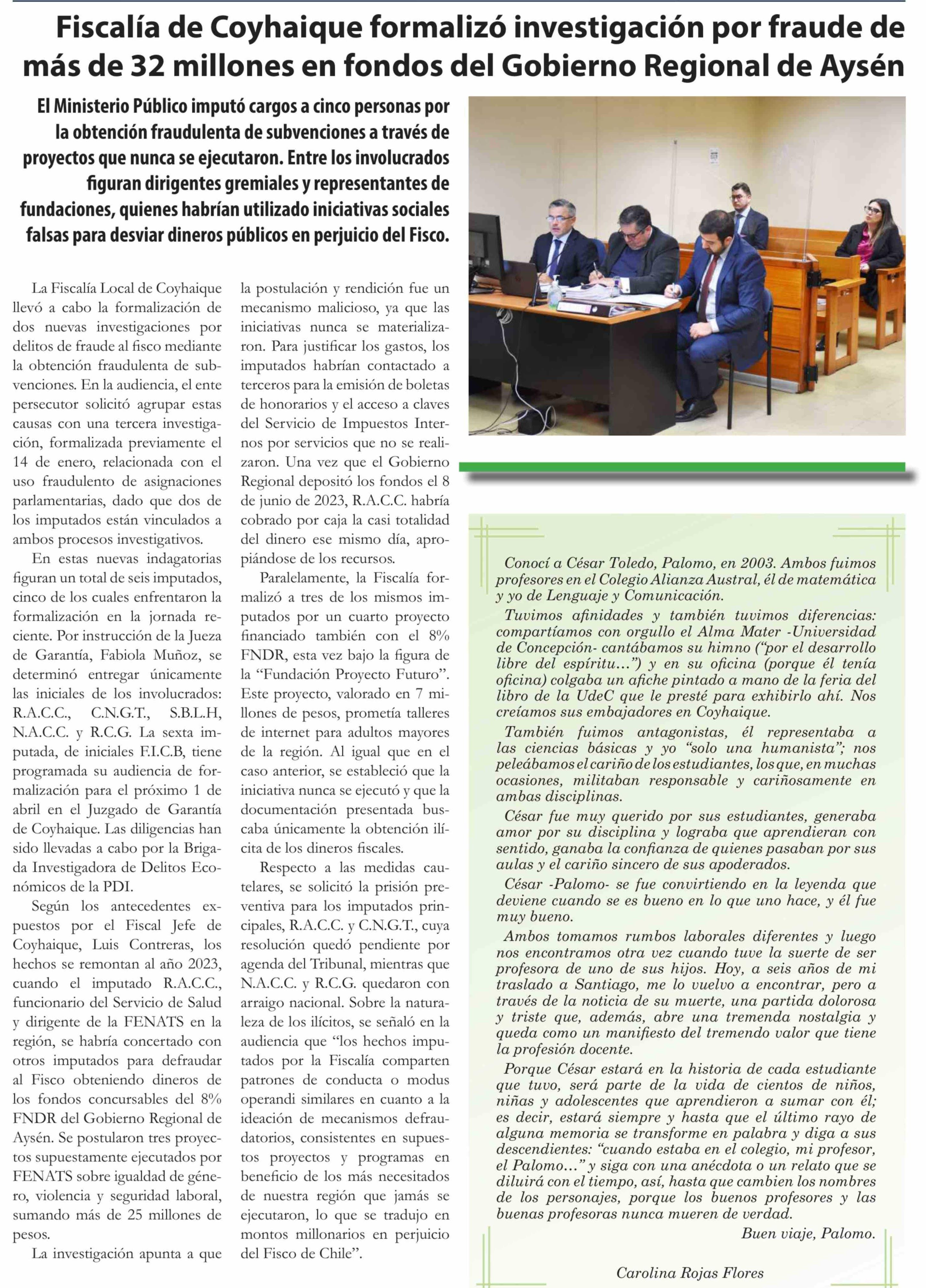 Fiscalía de Coyhaique formalizó investigación por fraude de más de 32 millones en fondos del Gobierno Regional de Aysén