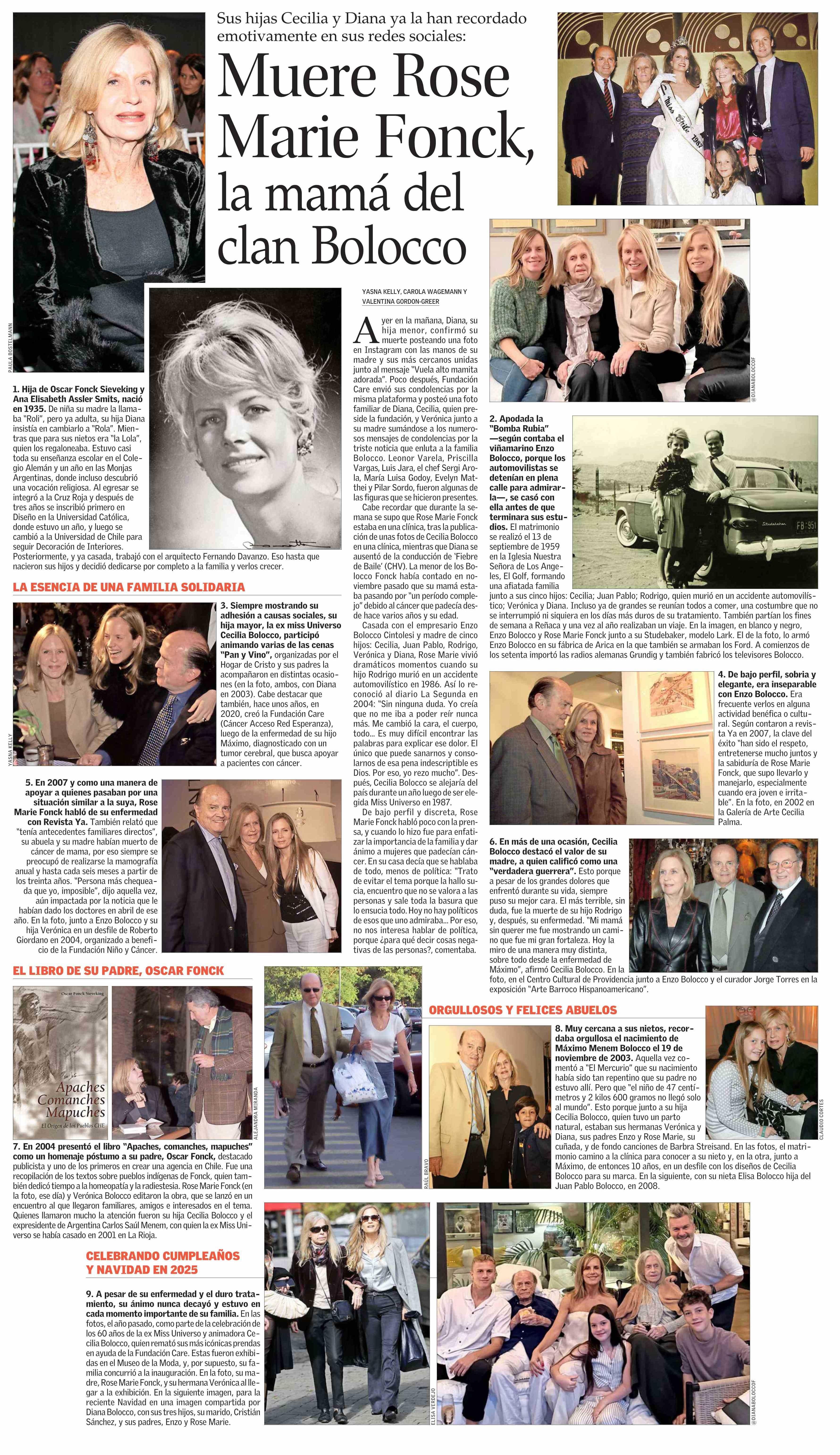 Muere Rose Marie Fonck, la mamá del clan Bolocco