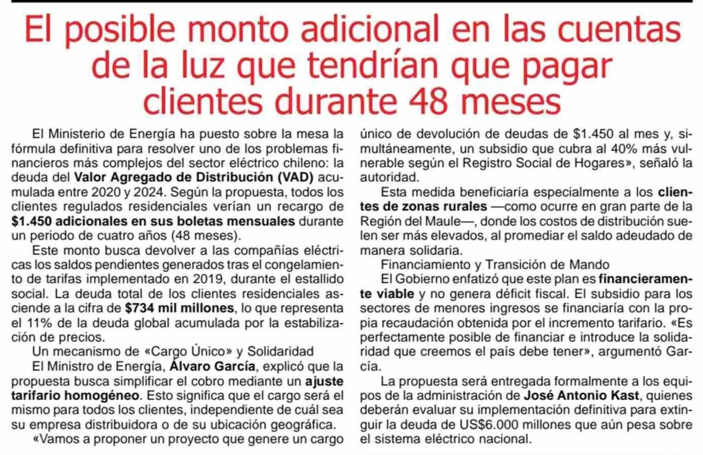 El posible monto adicional en las cuentas de la luz que tendrían que pagar clientes durante 48 meses