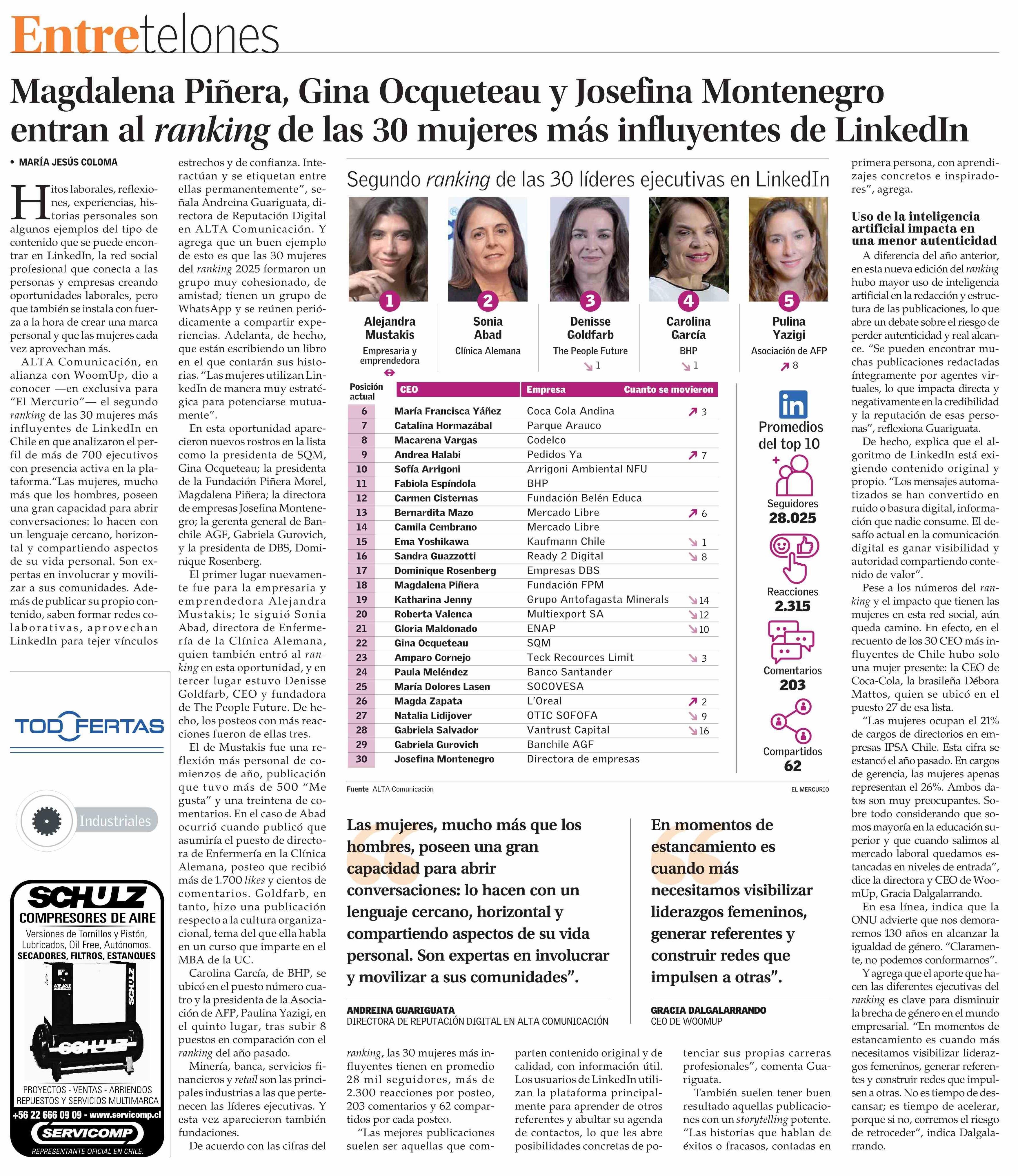 Magdalena Piñera, Gina Ocqueteau y Josefina Montenegro entran al ranking de las 30 mujeres más influyentes de LinkedIn