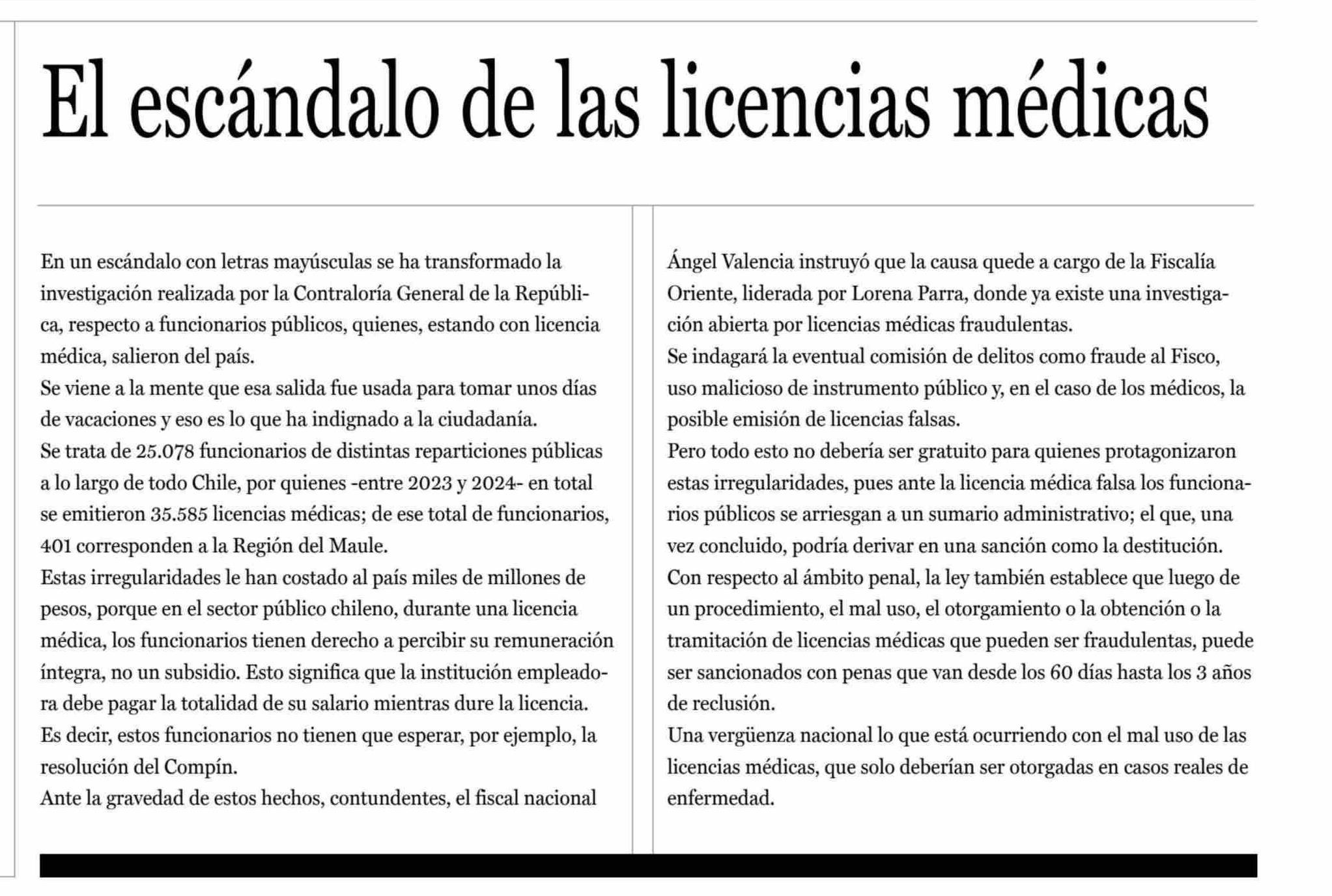 EDITORIAL: El escandalo de las licencias médicas
