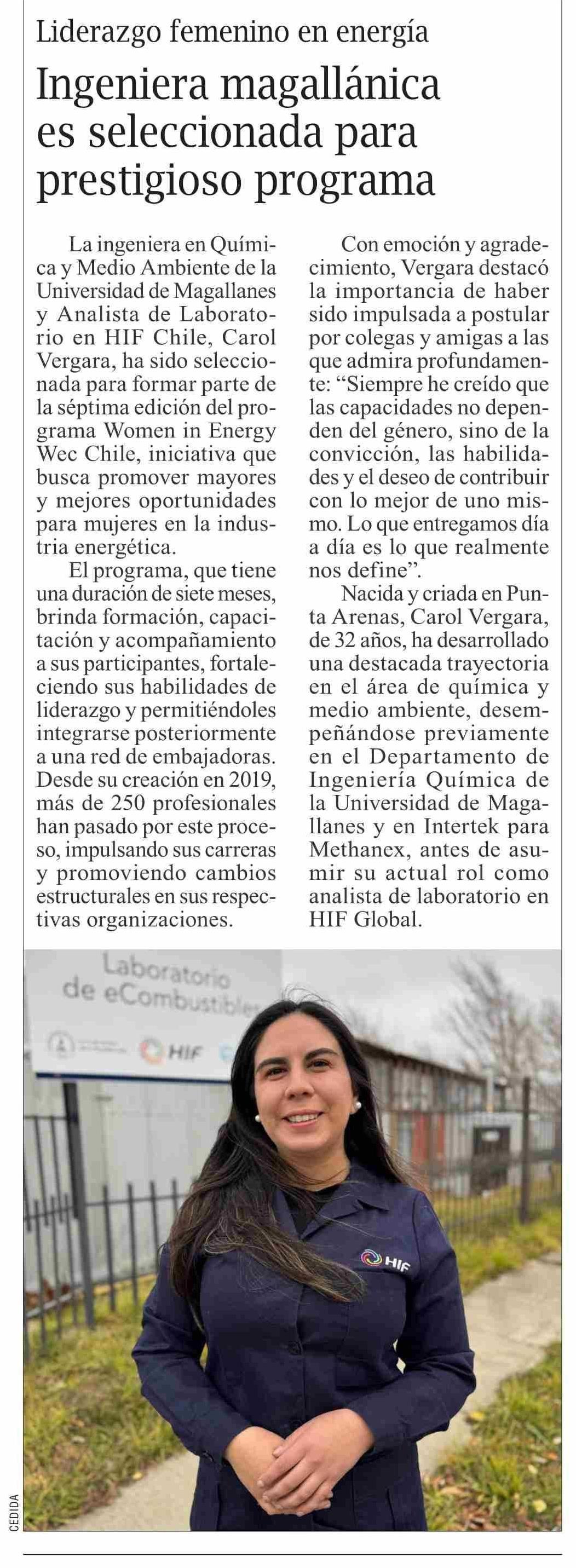 Ingeniera magallánica es seleccionada para prestigioso programa