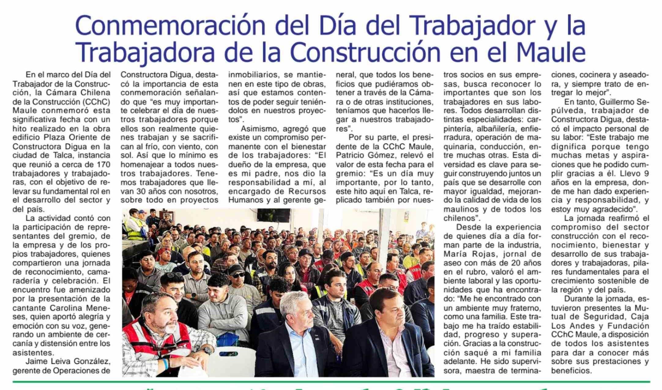 Conmemoración del Día del Trabajador y la Trabajadora de la Construcción en el Maule
